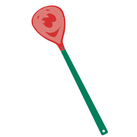 Fliegenklatsche "Gesicht" Griff mit praktischer Öse zum Aufhängen, Griff und Klatsche farblich kombinierbar. Farbkombinationen möglich.