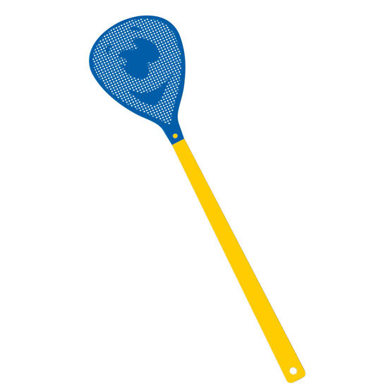 Fliegenklatsche "Gesicht" Griff mit praktischer Öse zum Aufhängen, Griff und Klatsche farblich kombinierbar. Farbkombinationen möglich.