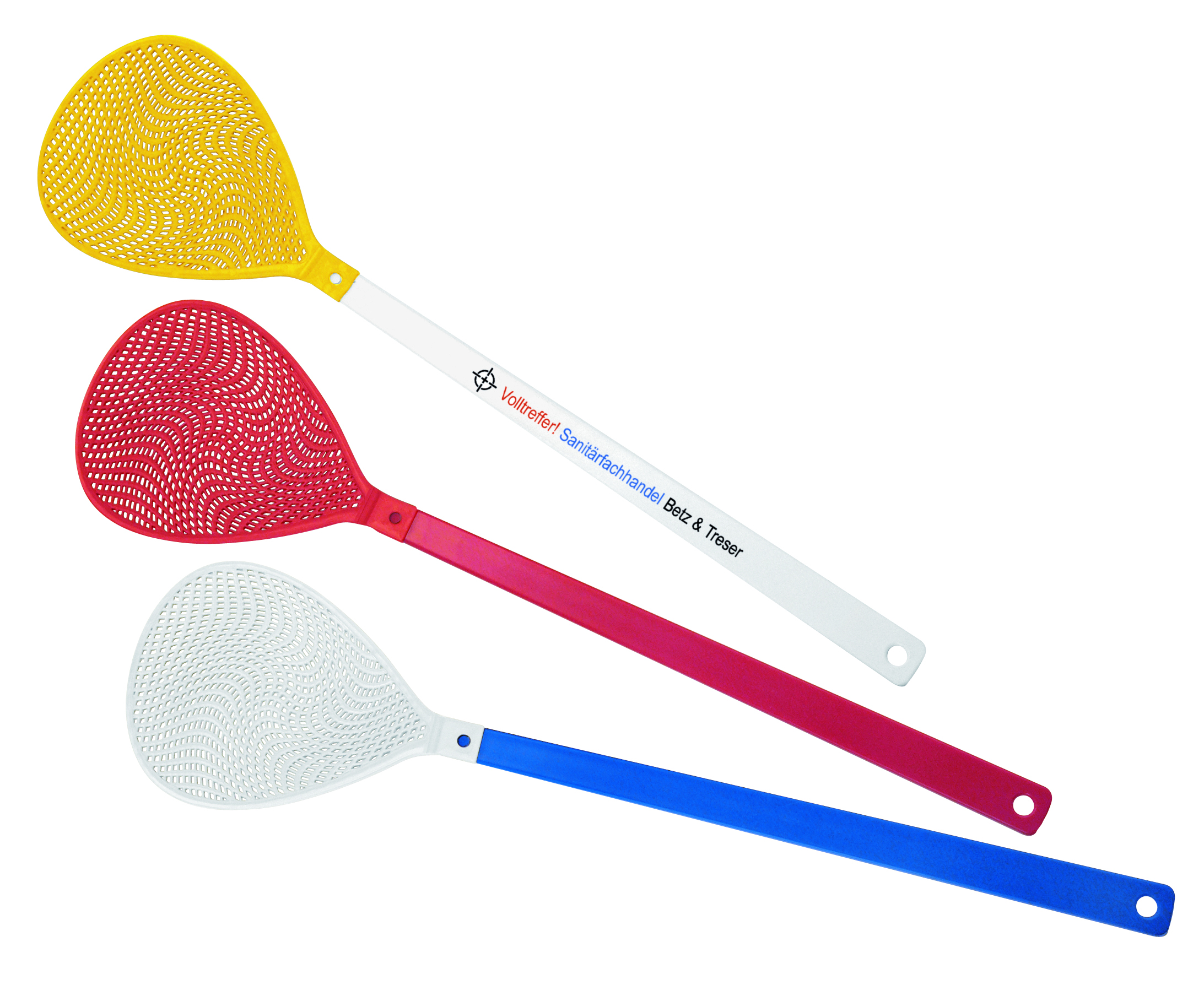 Fliegenklatsche "Oval" Griff mit praktischer Öse zum Aufhängen, Griff und Klatsche farblich kombinierbar