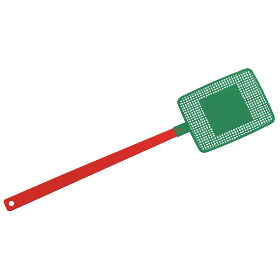 Fliegenklatsche "Rechteck" mit großer Druckfläche auf der Klatsche, Griff mit praktischer Öse zum Aufhängen, Griff und Klatsche farblich kombinierbar
