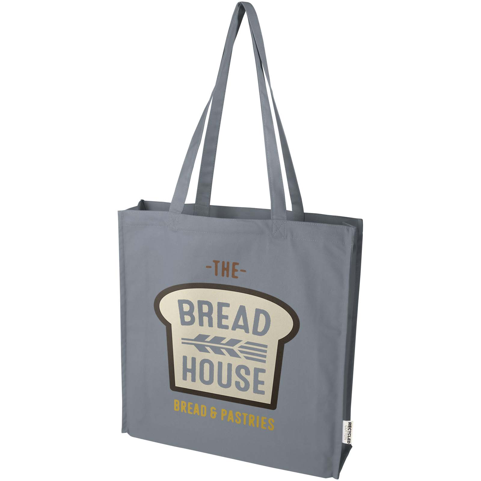 Die Florida Tragetasche mit Seitenfalten wird aus 100 % GRS-zertifizierter, Recyclingbaumwolle mit einem Gewicht von 270 g / m² hergestellt und ist eine verantwortungsbewusste und nachhaltige Wahl für den täglichen Bedarf. Mit einem Fassungsvermögen von bis zu 14 Litern und 30 cm langen Griffen ist sie ideal für den mühelosen Transport von Lebensmitteln, Büchern oder Alltagsgegenständen.