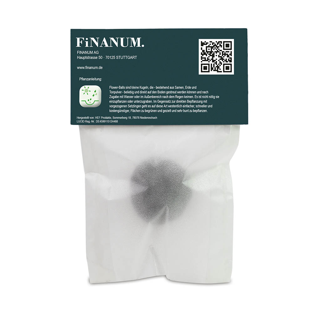 Samenbomben, bestehend aus Sommerblumensamen, Erde und Tonpulver, welche beliebig und direkt auf dem Boden verteilt werden können. Kein Einpflanzen notwendig. Eine Kugel im Pergamintütchen.