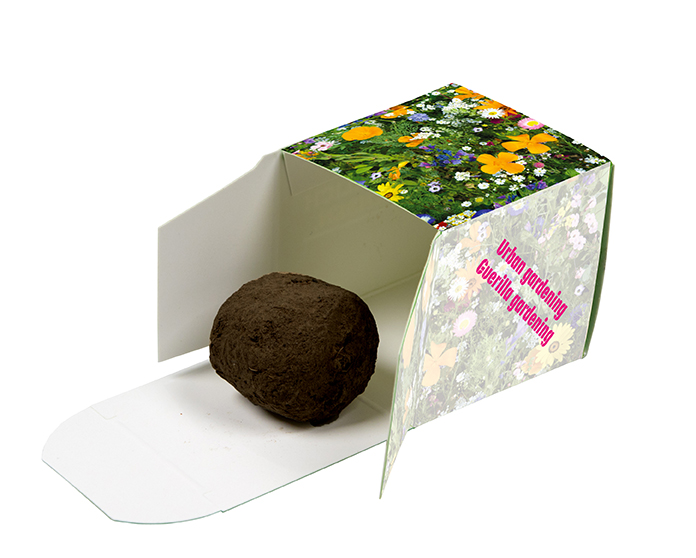 Samenbomben, bestehend aus Sommerblumensamen, Erde und Tonpulver, welche beliebig und direkt auf dem Boden verteilt werden können. Kein Einpflanzen notwendig. 3 Kugeln in der Tüte, bis zu 6 Kugeln sind möglich (Aufpreis auf Anfrage).