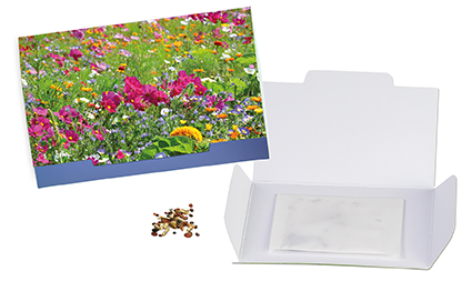 Der ideale Werbebotschafter für das ganze Jahr eignet sich perfekt als Mailingbegleiter. Die Karte kann mitverschiedenen, zur Auswahl stehenden Samen befüllt werden. Die Verpackung in flacher Kartenform wird rundum gestaltet und bedruckt und ist durch die flache Form ein ideales Mailing-Produkt und sympathisches Giveaway.