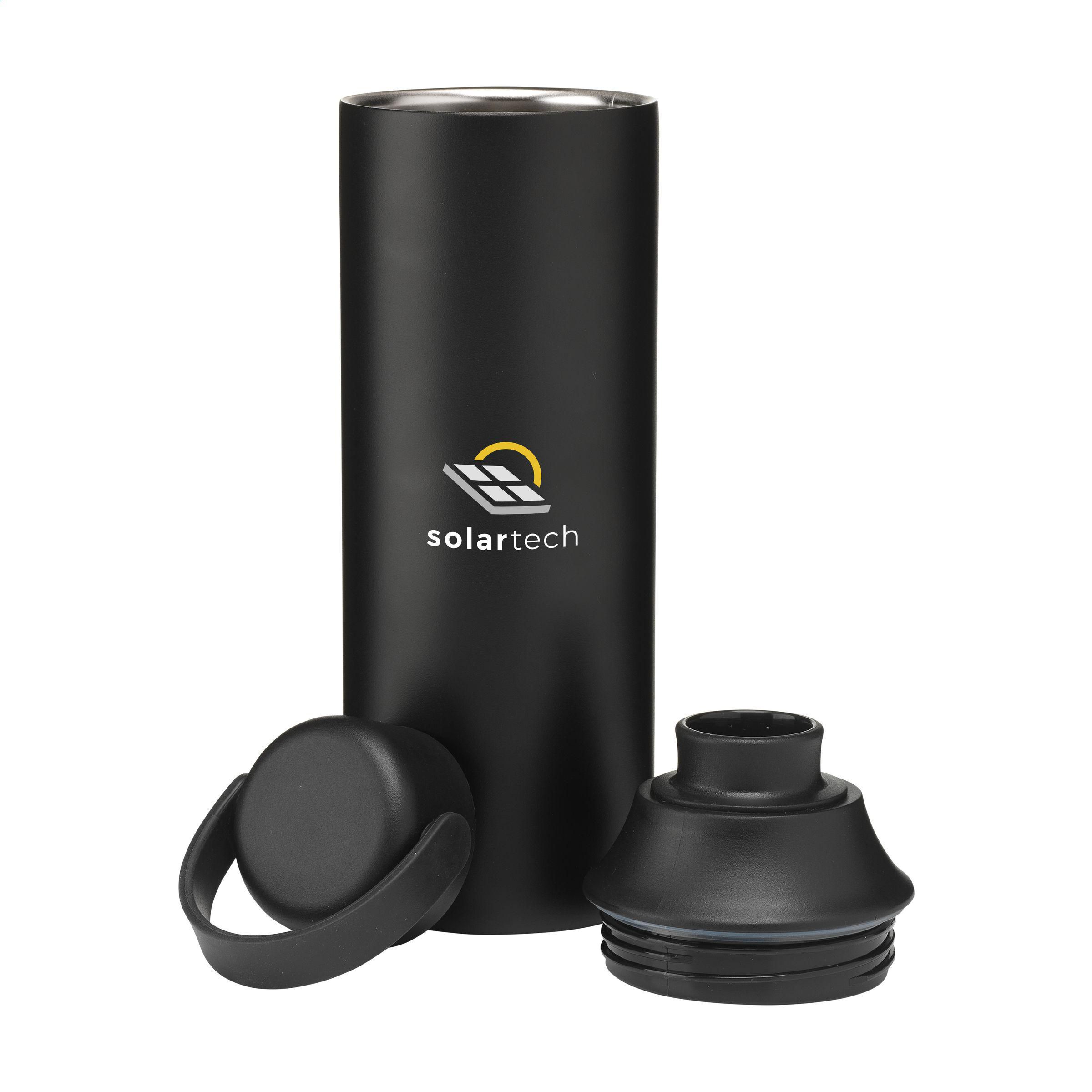 Doppelwandige Thermosflasche aus recyceltem Edelstahl. Die auslaufsichere Flasche hat eine Silikon-Trageschlaufe und 2 Öffnungen mit Schraubverschluss: eine Trinköffnung und eine großzügige Öffnung zum einfachen Reinigen der Flasche oder zum Einfüllen von Eiswürfeln. Passt in die meisten Getränkehalter und ist mit einer attraktiven Pulverbeschichtung versehen. Geeignet, um kalte oder heiße Getränke auf der richtigen Temperatur zu halten. Nicht spülmaschinengeeignet. RCS-zertifiziert. Gesamtes recyceltes Material: 72%. Fassungsvermögen 600 ml. Edelstahl kann viele Male recycelt werden – die Qualität des Materials bleibt dabei weitgehend erhalten. Durch die Verwendung von recyceltem Edelstahl kommt eine geringere Menge an neuen Rohstoffen zum Einsatz. Das bedeutet weniger Energieverbrauch und weniger Wasserverbrauch.
