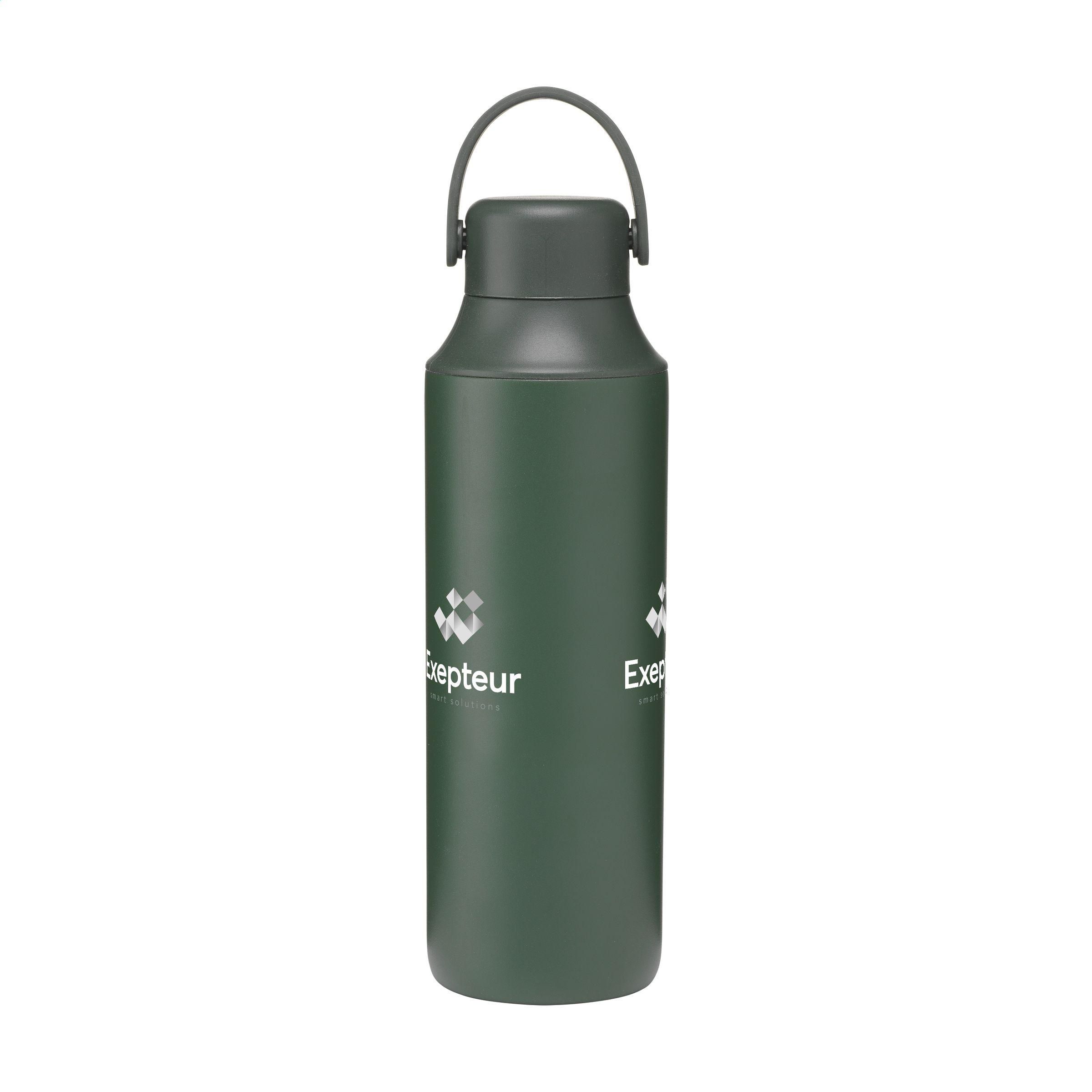 Doppelwandige Thermosflasche aus recyceltem Edelstahl. Die auslaufsichere Flasche hat eine Silikon-Trageschlaufe und 2 Öffnungen mit Schraubverschluss: eine Trinköffnung und eine großzügige Öffnung zum einfachen Reinigen der Flasche oder zum Einfüllen von Eiswürfeln. Passt in die meisten Getränkehalter und ist mit einer attraktiven Pulverbeschichtung versehen. Geeignet, um kalte oder heiße Getränke auf der richtigen Temperatur zu halten. Nicht spülmaschinengeeignet. RCS-zertifiziert. Gesamtes recyceltes Material: 72%. Fassungsvermögen 600 ml. Edelstahl kann viele Male recycelt werden – die Qualität des Materials bleibt dabei weitgehend erhalten. Durch die Verwendung von recyceltem Edelstahl kommt eine geringere Menge an neuen Rohstoffen zum Einsatz. Das bedeutet weniger Energieverbrauch und weniger Wasserverbrauch.