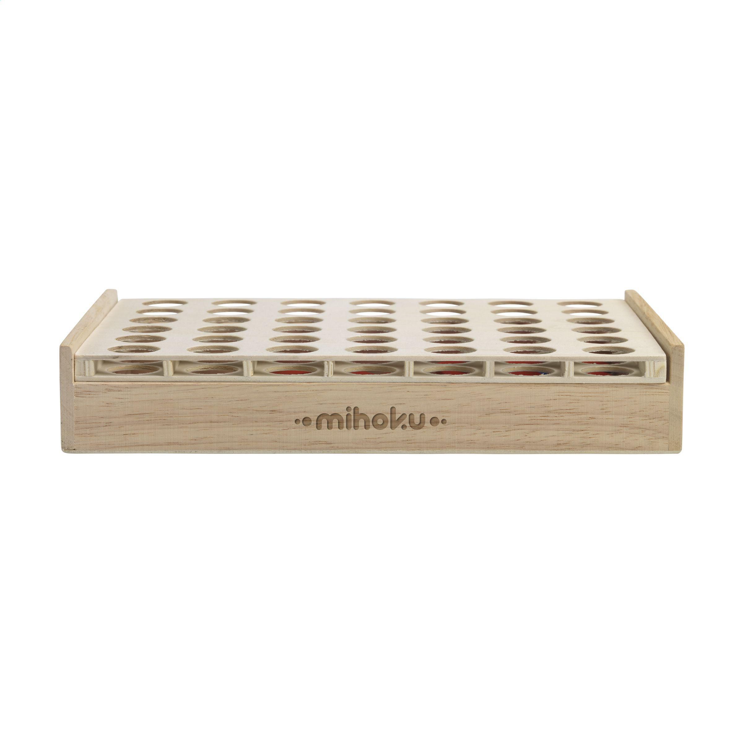 Strategiespiel für 2 Spieler. Diese kompakte Version besteht aus FSC 100% zertifiziertem Polywood und Sperrholz und wird mit 21 Steinen in Rot und Blau geliefert. Mit praktischer Drehfunktion zum Aufrichten des Rahmens. Wer als Erster 4 gleichfarbige Steine horizontal, vertikal oder diagonal aneinanderreiht, ist der Gewinner. Ein Spiel für Jung und Alt. Inklusive Spielregeln.