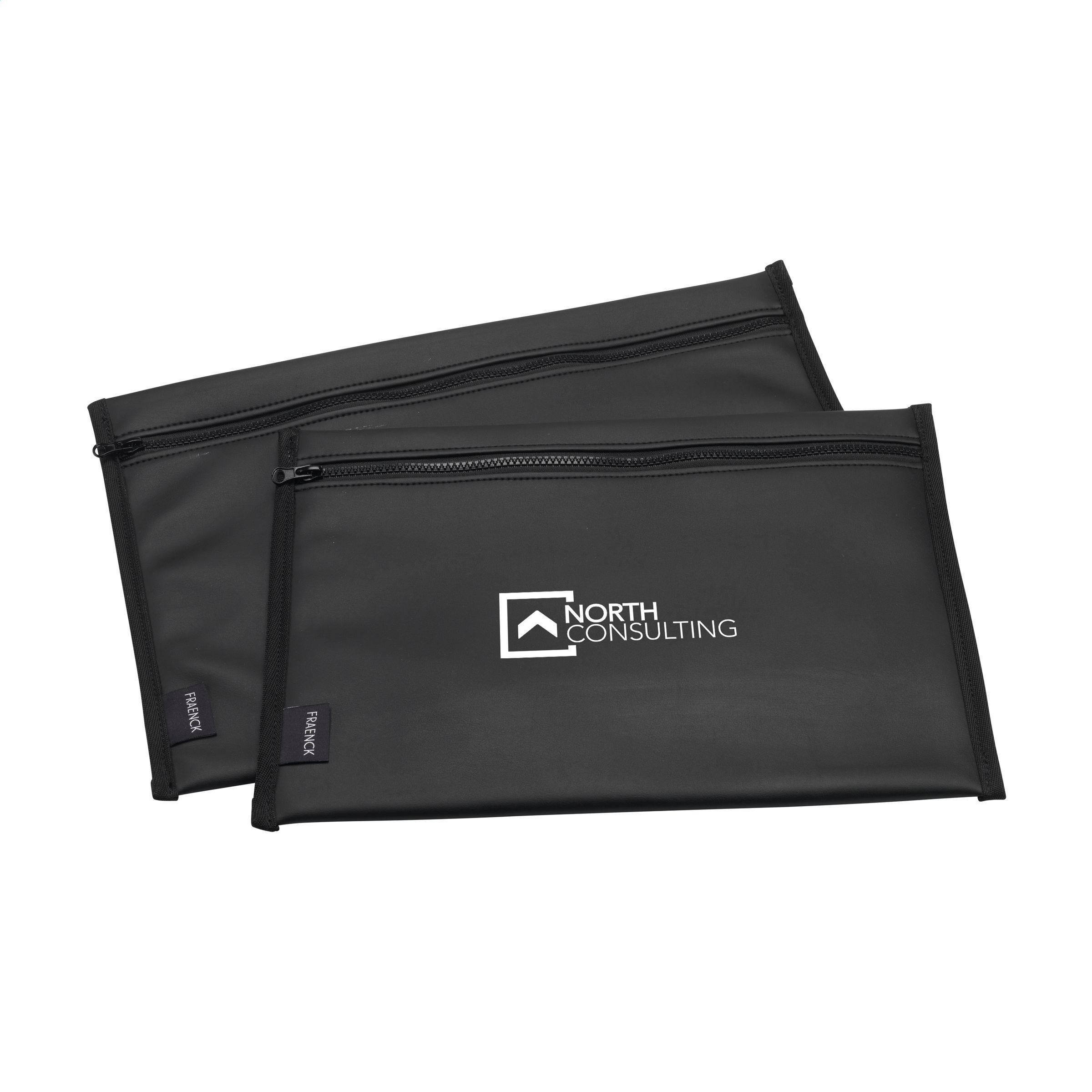 Eine 14-Zoll-Laptoptasche der Marke Fraenck. Hergestellt aus upgecyceltem Lederimitat. Das weiche, dicke Futter schützt Ihren Laptop vor Beschädigungen. Beide Seiten der Hülle sind mit Schrägband verstärkt. Ausgestattet mit einem robusten Reißverschluss. Geeignet für die Aufbewahrung und den sicheren Transport eines Laptops oder Tablets bis zu 14 Zoll. Made in Holland. Fraenck ist B-Corp-zertifiziert; die Kollektion wird nach den höchstmöglichen ökologischen und sozialen B-Corp-Standards hergestellt.