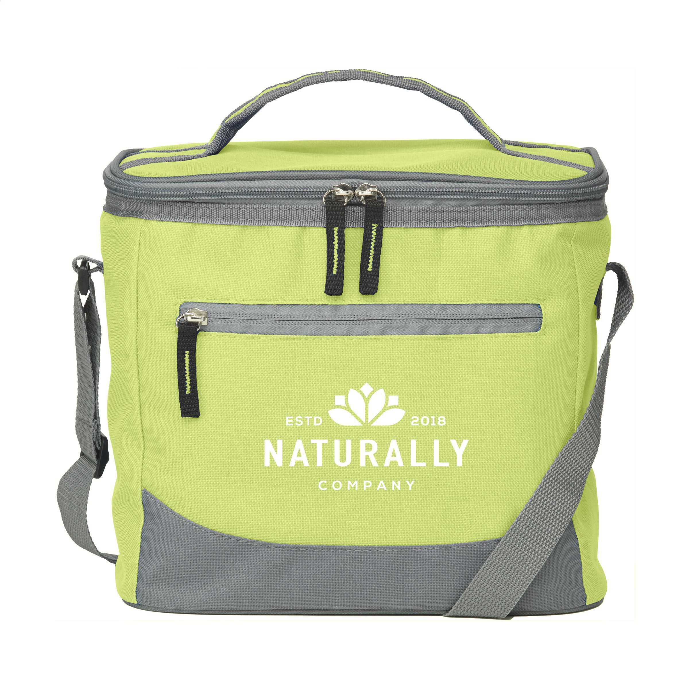 Kühltasche im praktischen Format. Aus 600D Polyester. Mit großem Kühlfach,Fronttasche mit Reissverschluss, Griff und anpassbarem Schultergurt. Passend für 12 Getränkedosen. Fassungsvermögen ca. 10 Liter.