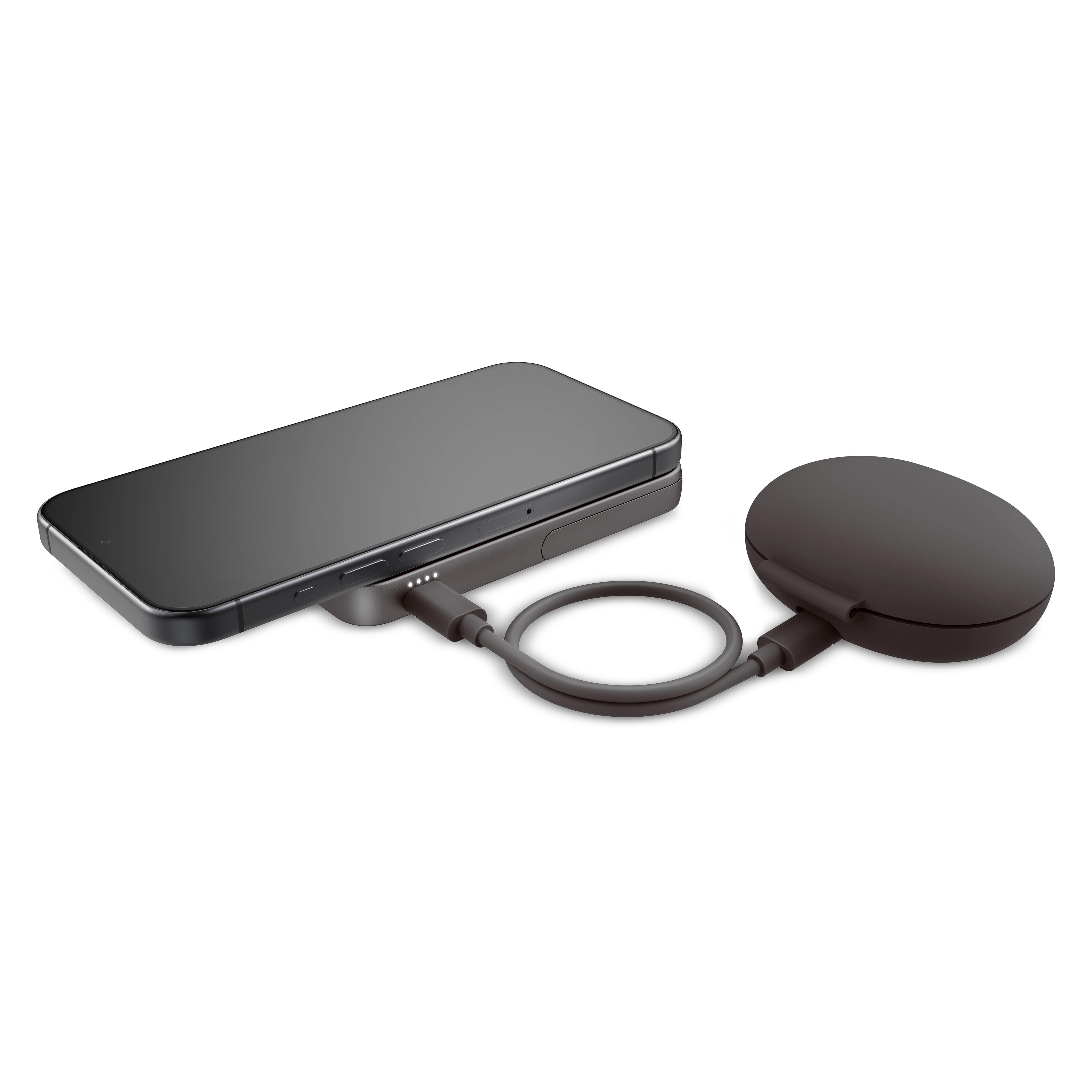 Eine ultradünne Magnetic Wireless Powerbank mit 5000 mAh. Dies ist die ideale Lösung für drahtloses Aufladen, wenn Sie unterwegs sind. Dank der starken Magneten bleibt sie fest an Ihrem Telefon oder Ihrer Tasche mit Magnetfunktion (iPhone 12 und später) befestigt. Die Powerbank ist aus leichten Materialien gefertigt. Mit ihren abgerundeten Ecken und dem Metallic-Finish ist sie ein echter Hingucker! Kabellose Leistung 5W/7.5W. Gesamtleistung 5V/3A. Geeignet für alle Telefone und andere Produkte, die kabelloses und USB-C-Laden unterstützen, bis zu einem Maximum von 20W PD.
