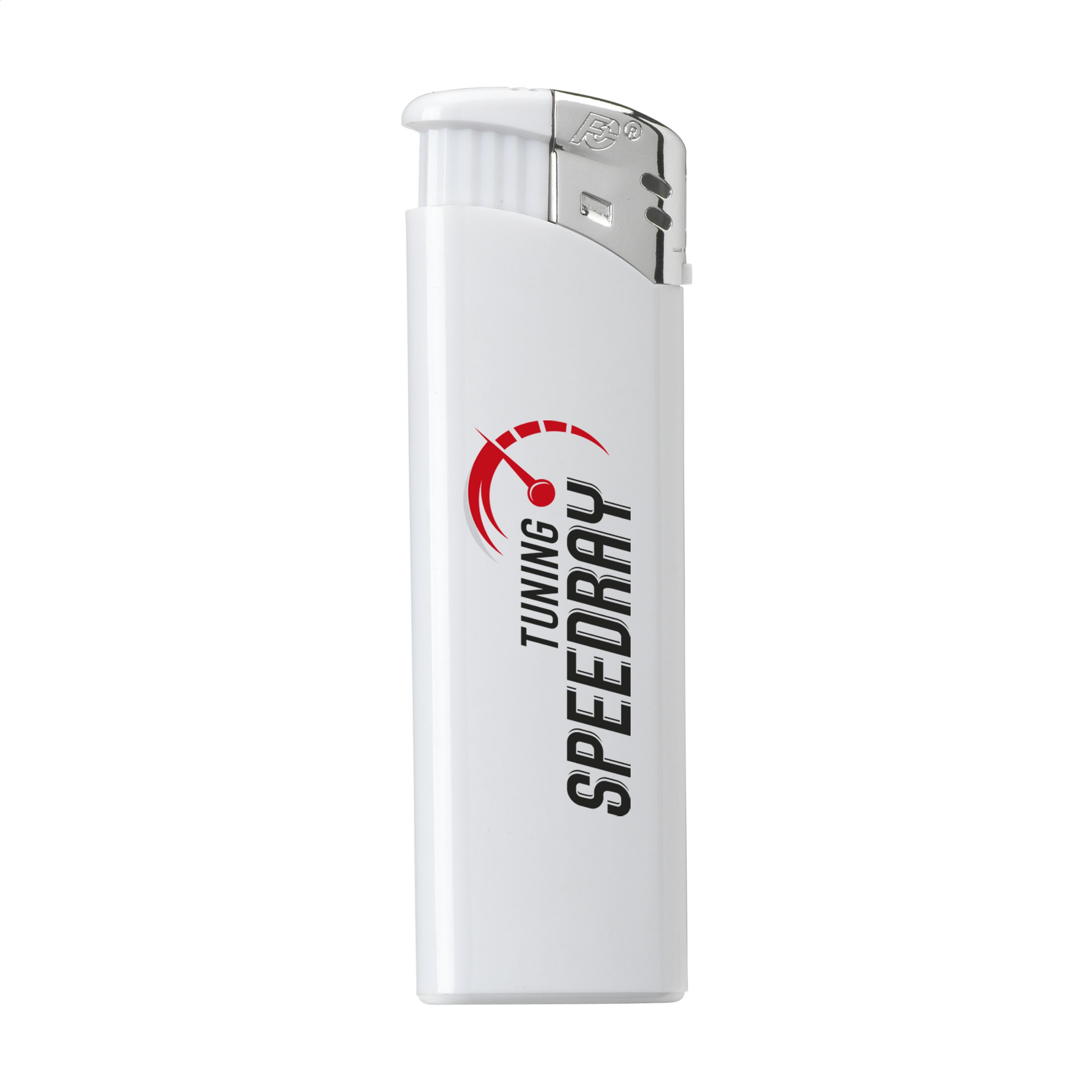 Automatisches, nachfüllbares Feuerzeug der Marke Flameclub®. Mit anpassbarer Flamme. Mit Kindersicherung. NEN-zertifiziert: EN13869. TÜV-zertifiziert und ISO-zertifiziert: ISO9994. Feuerzeug wird nur mit Aufdruck geliefert.