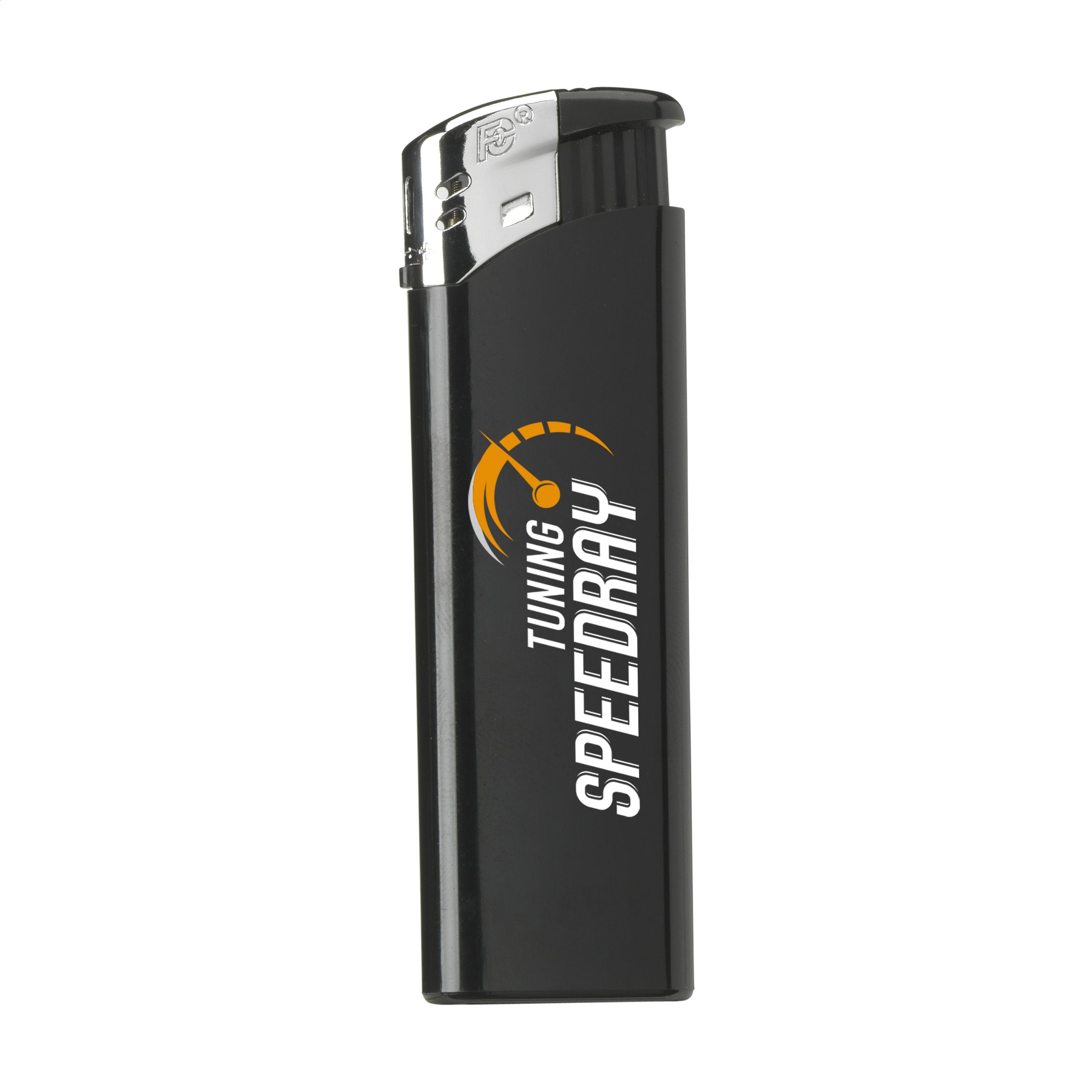 Automatisches, nachfüllbares Feuerzeug der Marke Flameclub®. Mit anpassbarer Flamme. Mit Kindersicherung. NEN-zertifiziert: EN13869. TÜV-zertifiziert und ISO-zertifiziert: ISO9994. Feuerzeug wird nur mit Aufdruck geliefert.