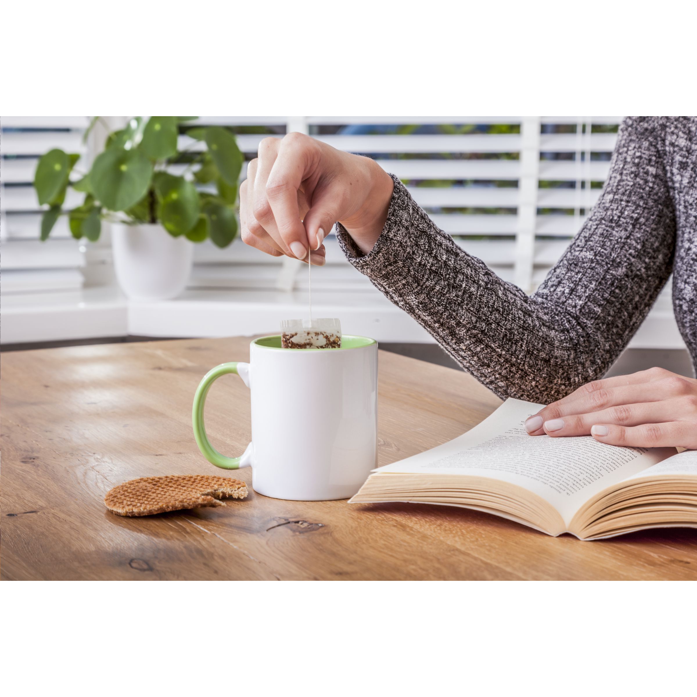 Hochwertige Tasse aus Keramik mit farbiger Innenseite. Die Farbe des großzügigen Henkels gleicht der Farbe der Innenseite, was für einen spezielen Effekt sorgt. Die perfekte Tasse für alle Drucke in Full Colour, auch Fotos. Spühlmaschinegeeignet. Fassungsvermögen 350 ml.