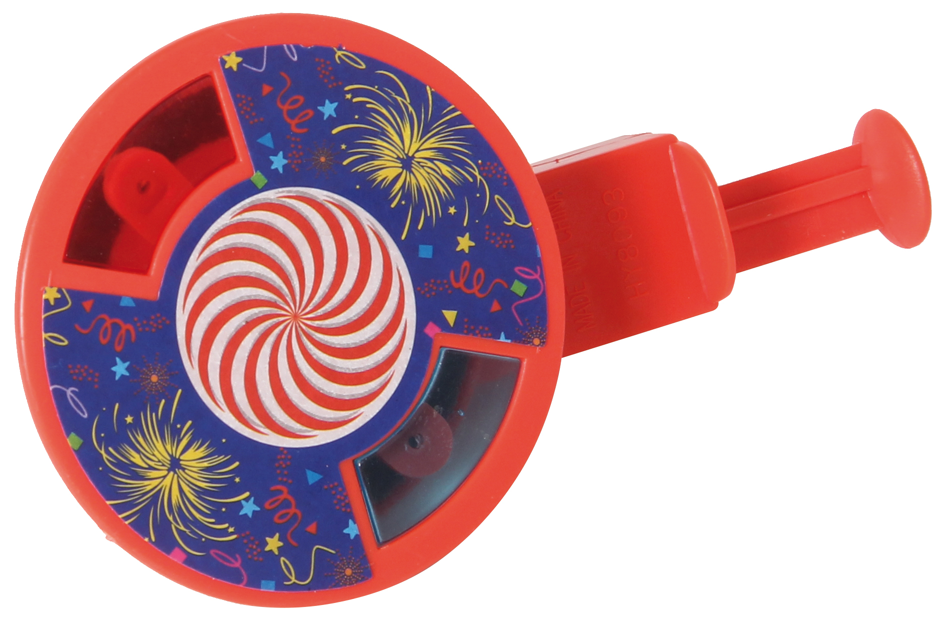 Mit diesem Feuerrad kann man sein eigenes kleines Feuerwerk starten. In den Farben rot und blau sortiert.