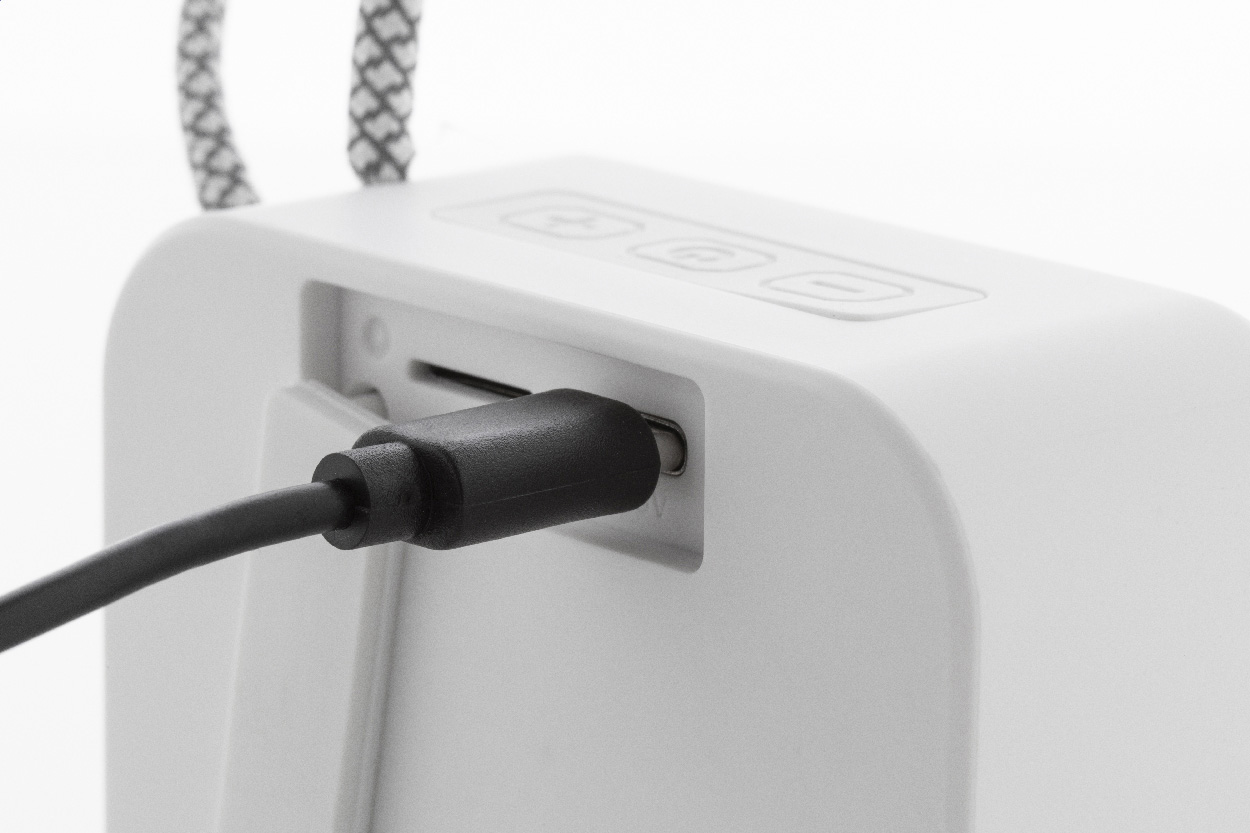 Kabelloser Lautsprecher aus recyceltem ABS mit Trageschlaufe, Metallgitter und wiederaufladbarem Akku (300 mAh). Mit Micro-SD-Funktion zur MP3-Wiedergabe. Inklusive USB-Ladekabel.