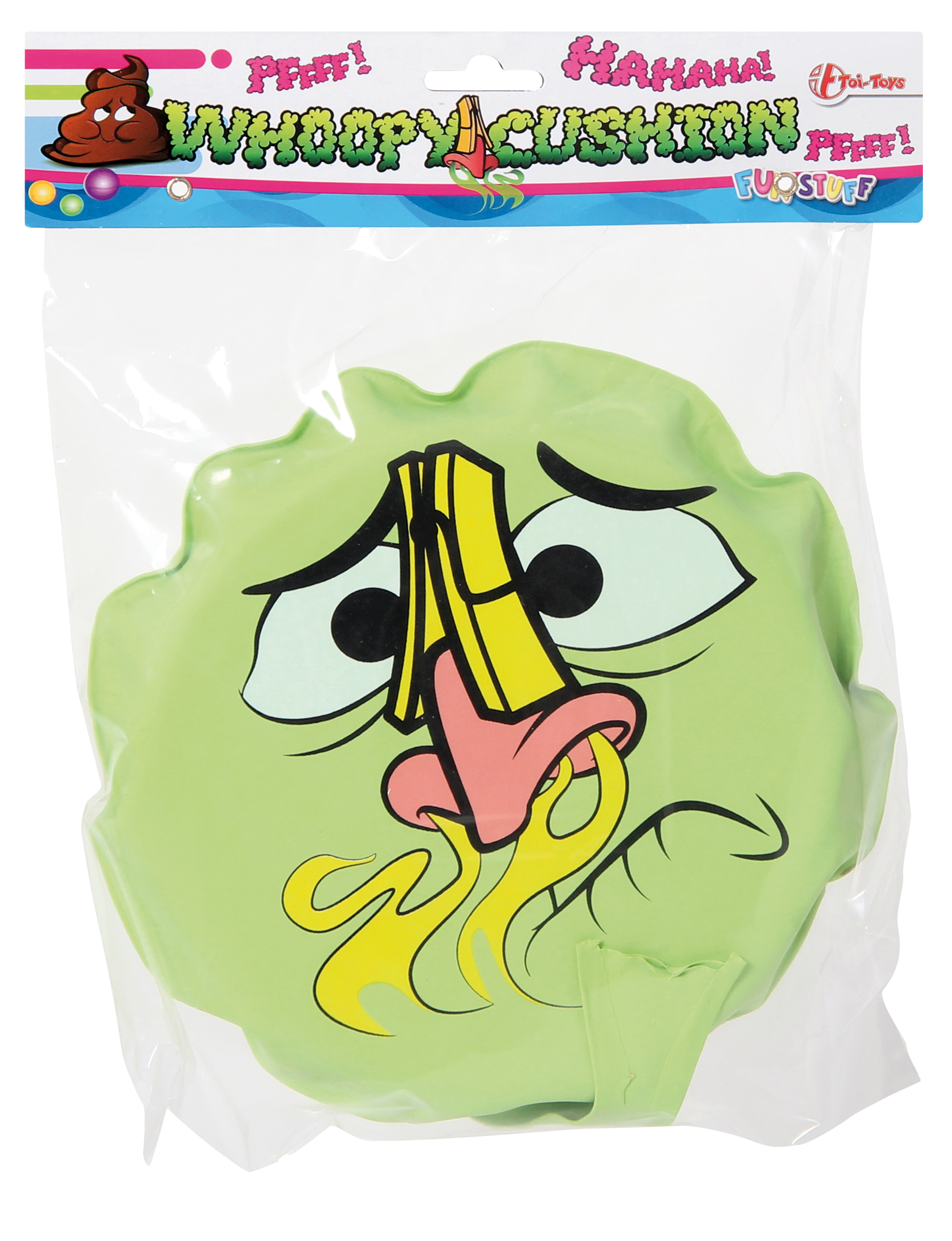 Gemein, aber immer für einen derben Spaß gut! Klassisches Pups-Kissen in neuem Design. Vier Designs sortiert.
