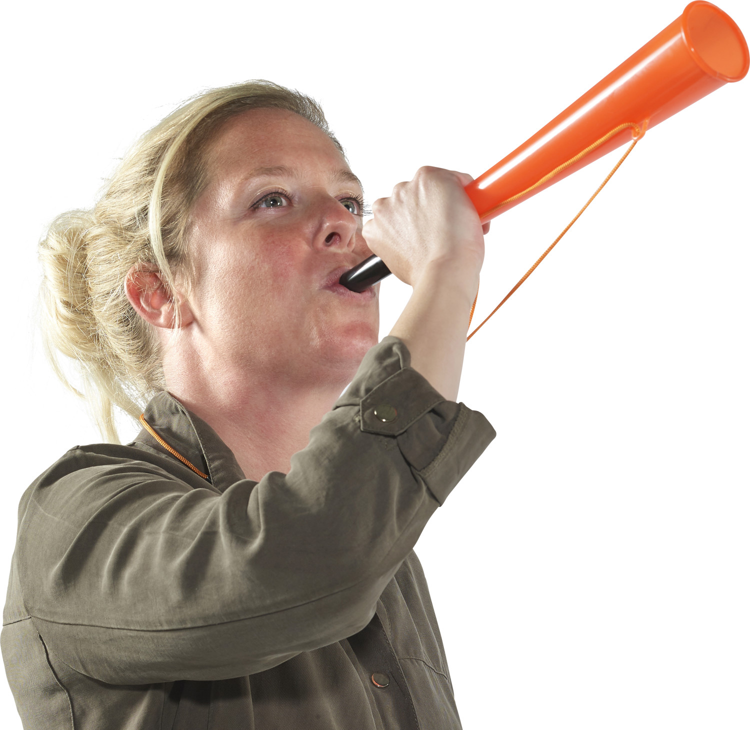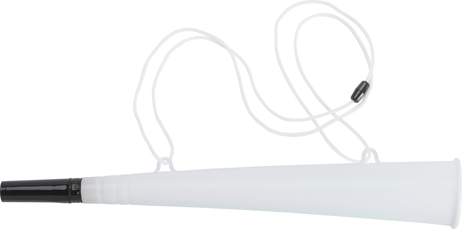 Fussball-Horn aus Kunststoff, inkl. Kordel und Sicherheitsverschluss. Länge der Kordel: ca. 100 cm.
