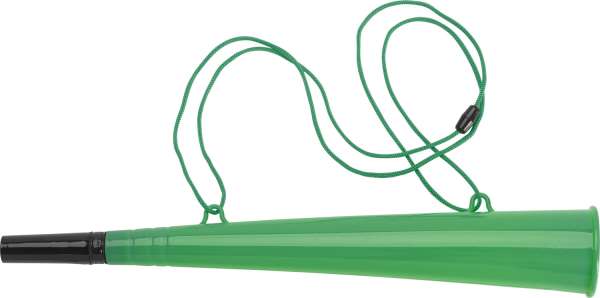 Fussball-Horn aus Kunststoff, inkl. Kordel und Sicherheitsverschluss. Länge der Kordel: ca. 100 cm.