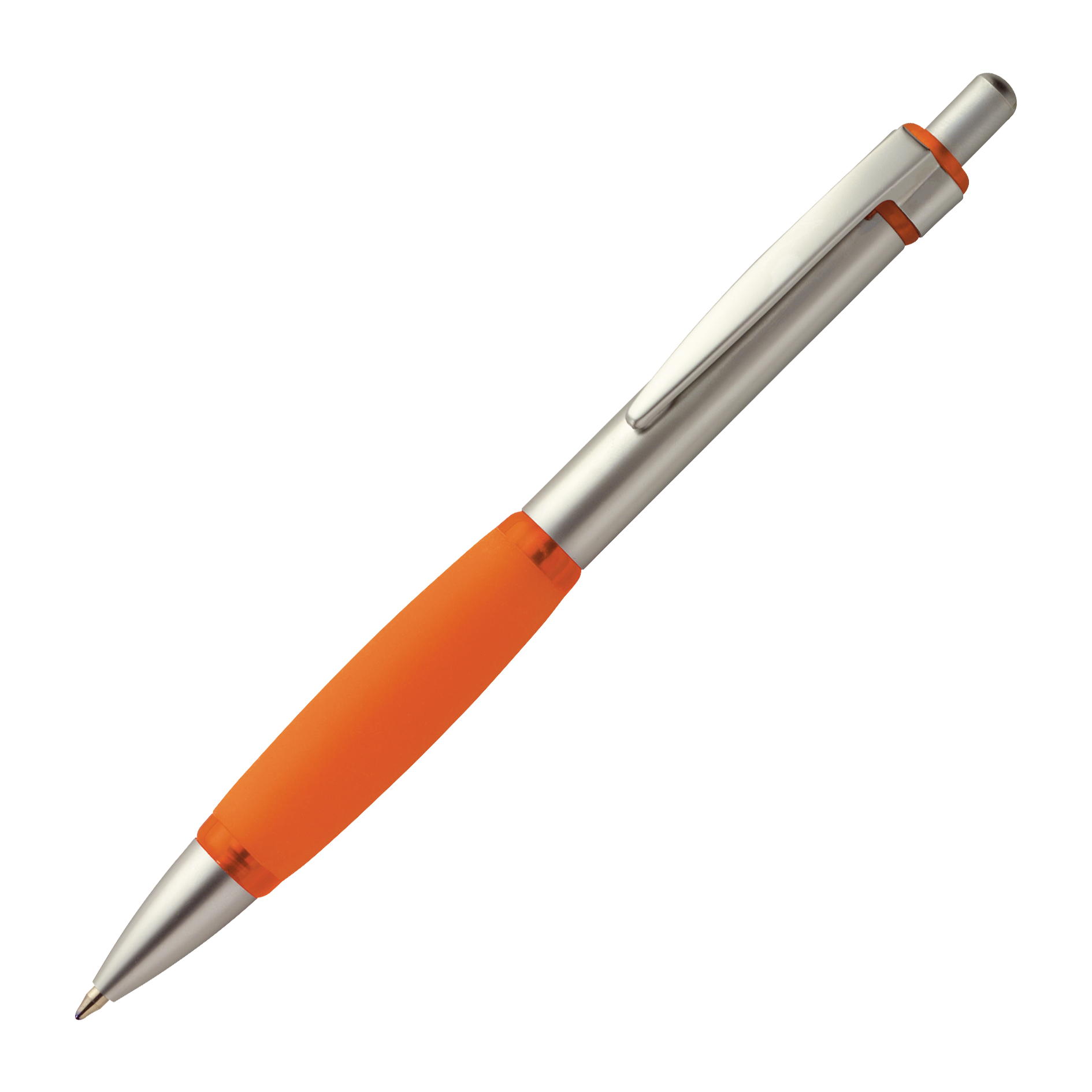 GANGARO Metall Kugelschreiber Peekay, silberfarbiger Design Metall-Kugelschreiber mit auffällig farbiger Griffzone und Clipmanschette und mit blauschreibender Metall-Großraummine