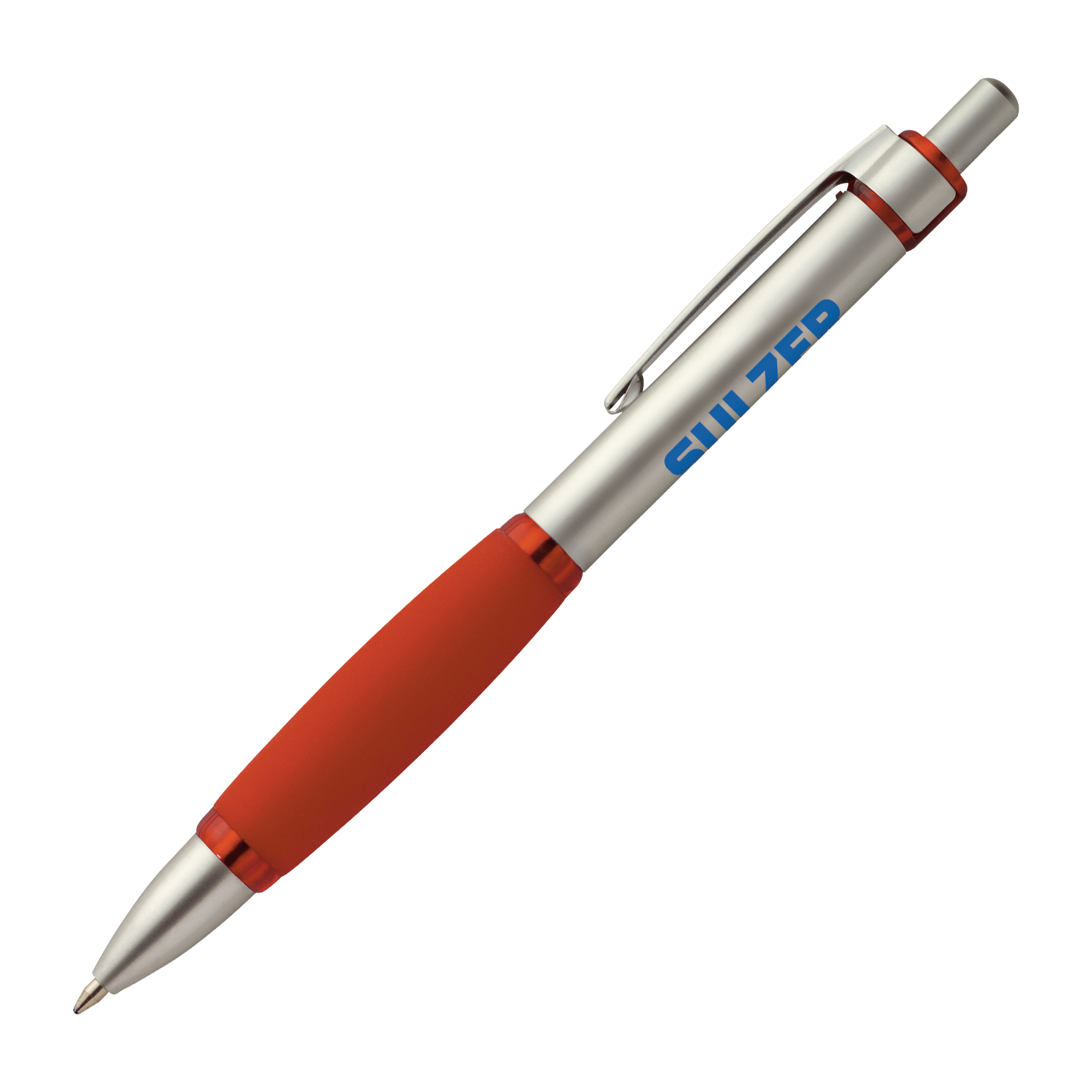 GANGARO Metall Kugelschreiber Peekay, silberfarbiger Design Metall-Kugelschreiber mit auffällig farbiger Griffzone und Clipmanschette und mit blauschreibender Metall-Großraummine
