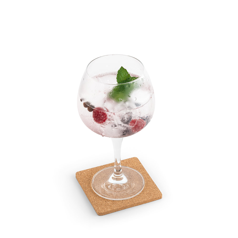 Untersetzer aus Kork in quadratischer Form mit abgerundeten Ecken. Da das Produkt aus natürlichen Materialien hergestellt wird, können Farbe des Produkts sowie das Druckergebnis von Produkt zu Produkt unterschiedlich sein. 100 x 100 x 5 mm