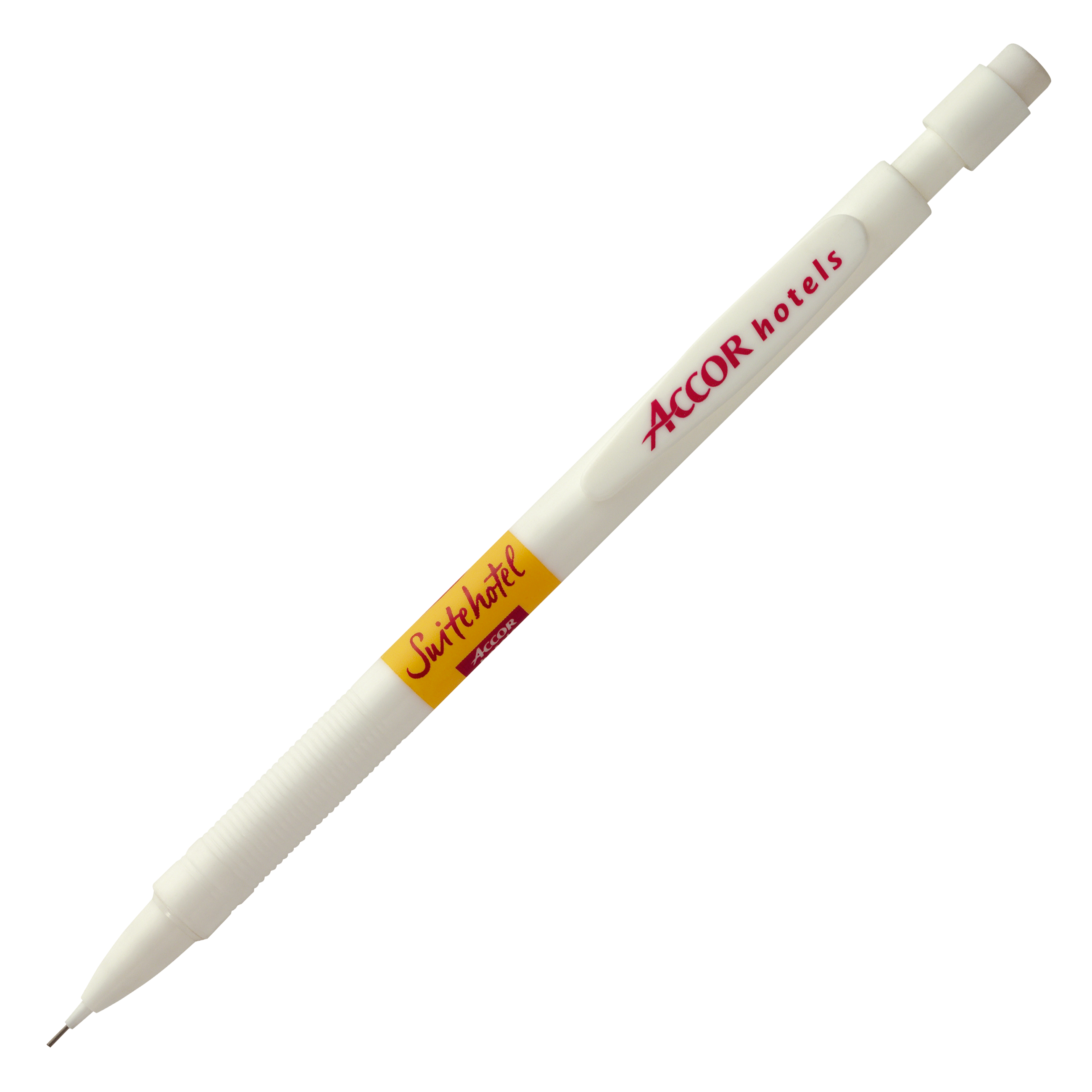GAZ Druckbleistift Peekay, Kunstoff-Druckbleistift mit Kunststoff-Clip und weißem Radiergummi auf Drücker, ausgestattet mit zwei Bleistiftminen 0,7 mm.