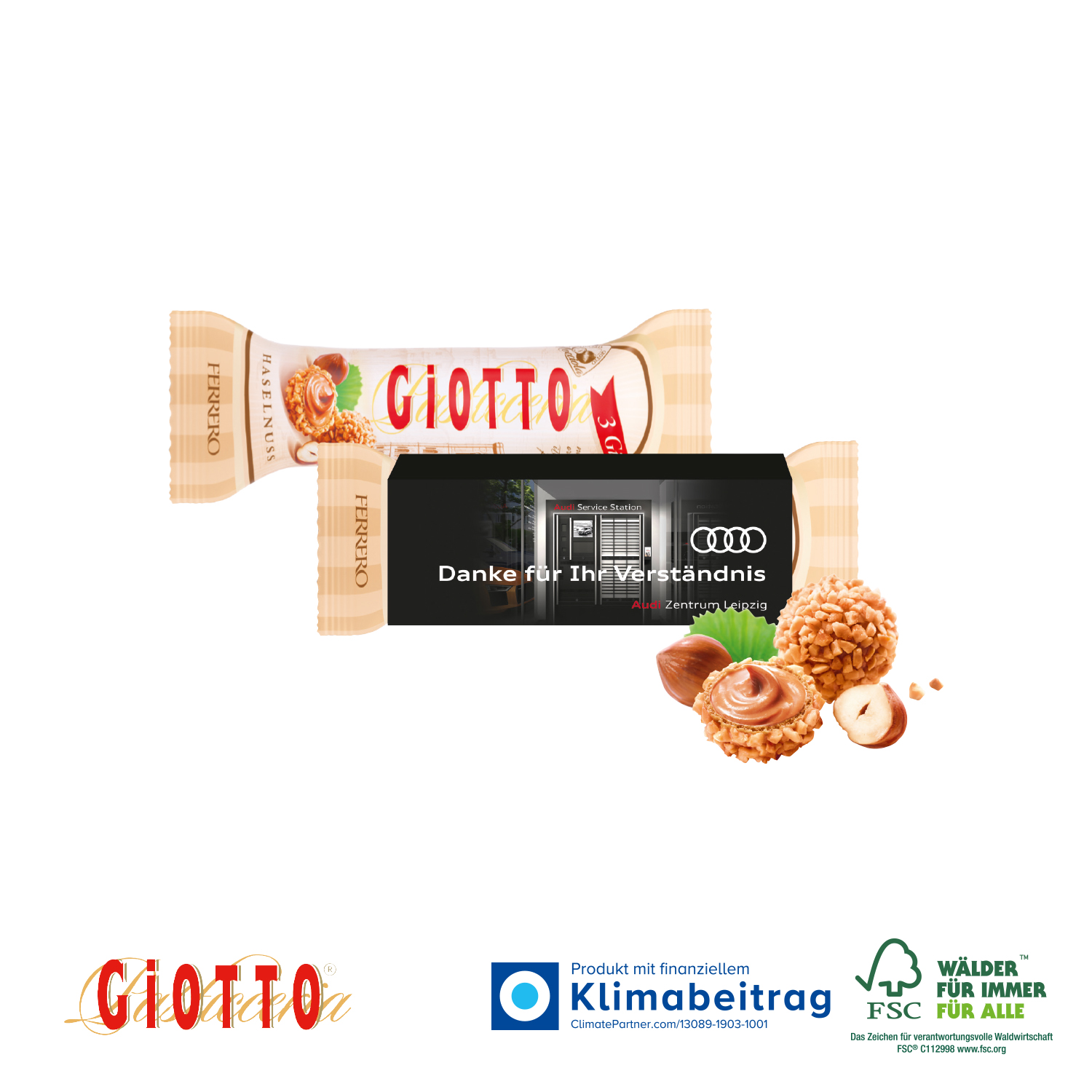 Werbung auf die italienische Art! Die kleinen GIOTTO Dreierstangen eignen sich besonders gut zum Teilen beim gemeinsamen Kaffee mit Kollegen und Kolleginnen oder als Messesnack. Ideal für Ihre Werbebotschaft.