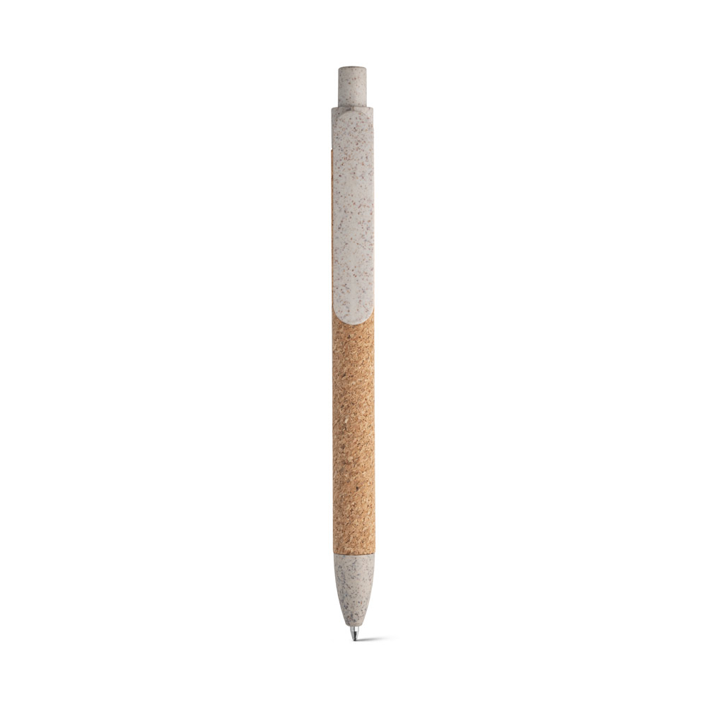 Kugelschreiber aus Kork mit Clip und farbigen Elementen aus Weizenstrohfaser und PP mit blauschreibender Mine. Da das Produkt aus natürlichen Materialien hergestellt wird, können Farbe des Produkts sowie das Druckergebnis von Produkt zu Produkt unterschiedlich sein. ø11 x 140 mm
