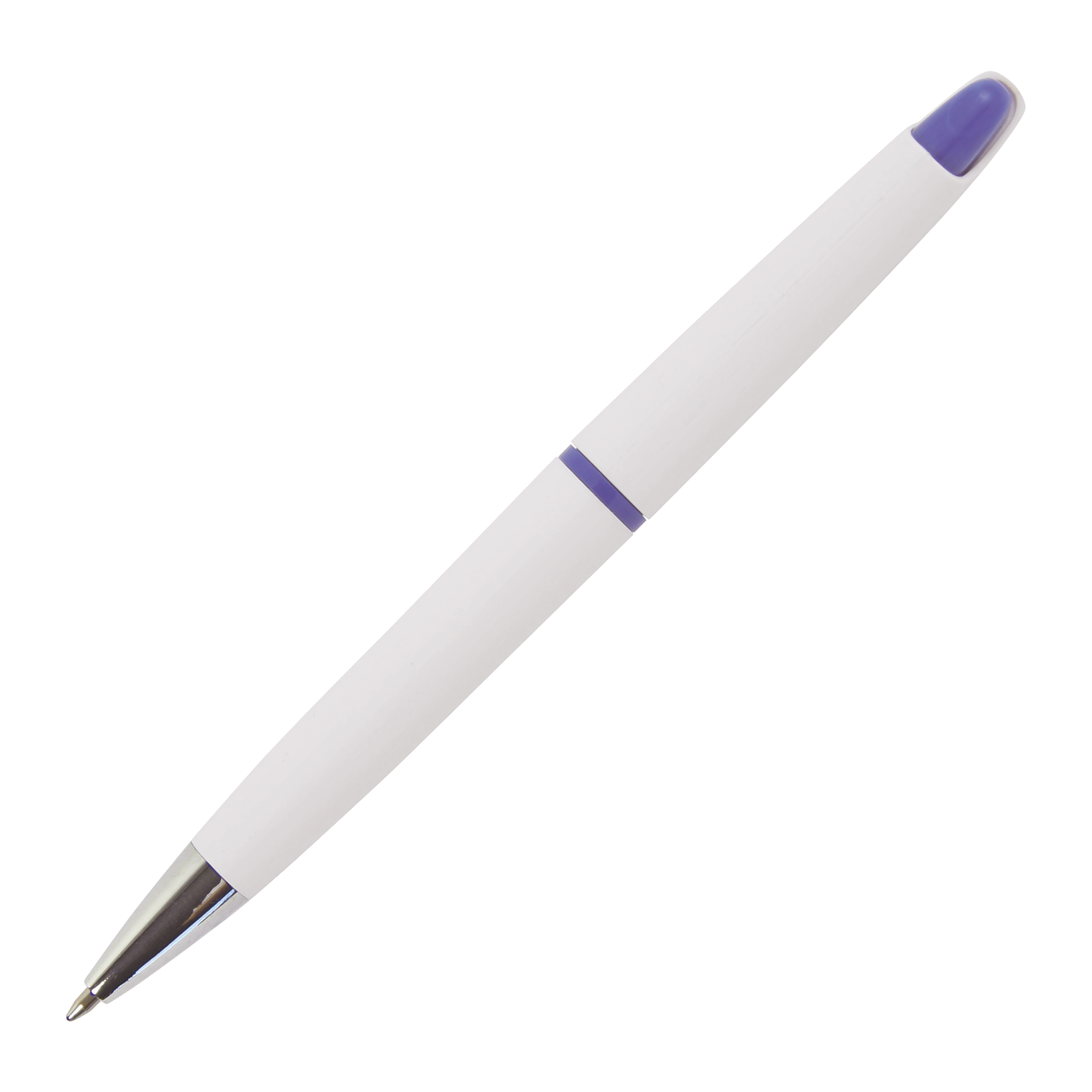GOZO Plastik-Kugelschreiber Peekay in weiß mit Clip, Spitze aus Metall und blau schreibende Mine. Drücker und Ring lieferbar in mehreren Farben.