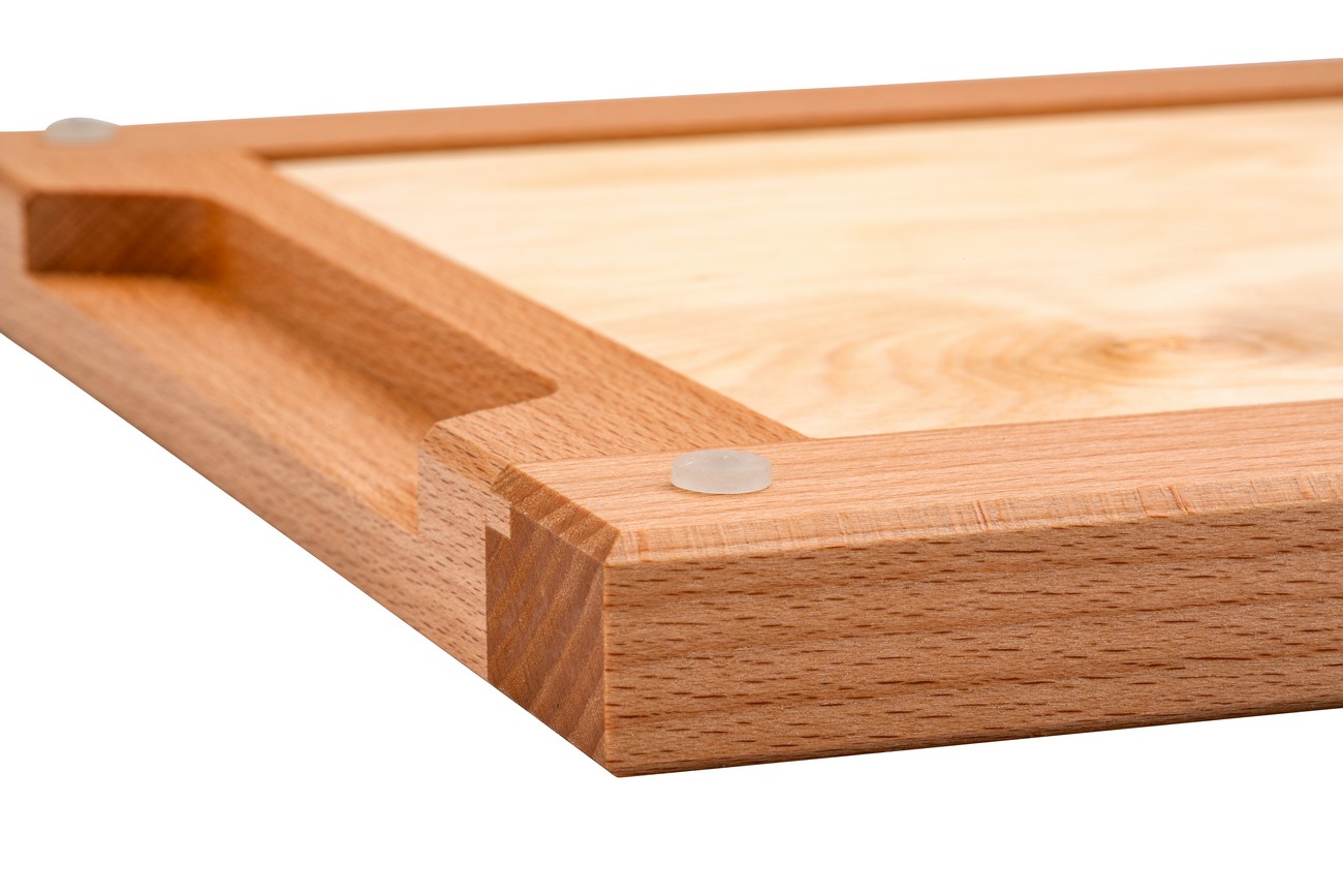 Brotschneidebrett mit herausnehmbarem Gitter Gummifüße als Schutz gegen Verrutschen. Gewicht: ca. 1050 g Material: FSC- Buchenholz, geölt Maße: 400 x 250 x 22 mm Werbeanbringung: Auf dem äußeren Rand der Oberseite, 50 x 20 mm (L2); Dieses Produkt unterstützt aktiv den Ausgleich der Entstehenden CO2-Emissionen durch zertifizierte Klimaschutzprojekte.
