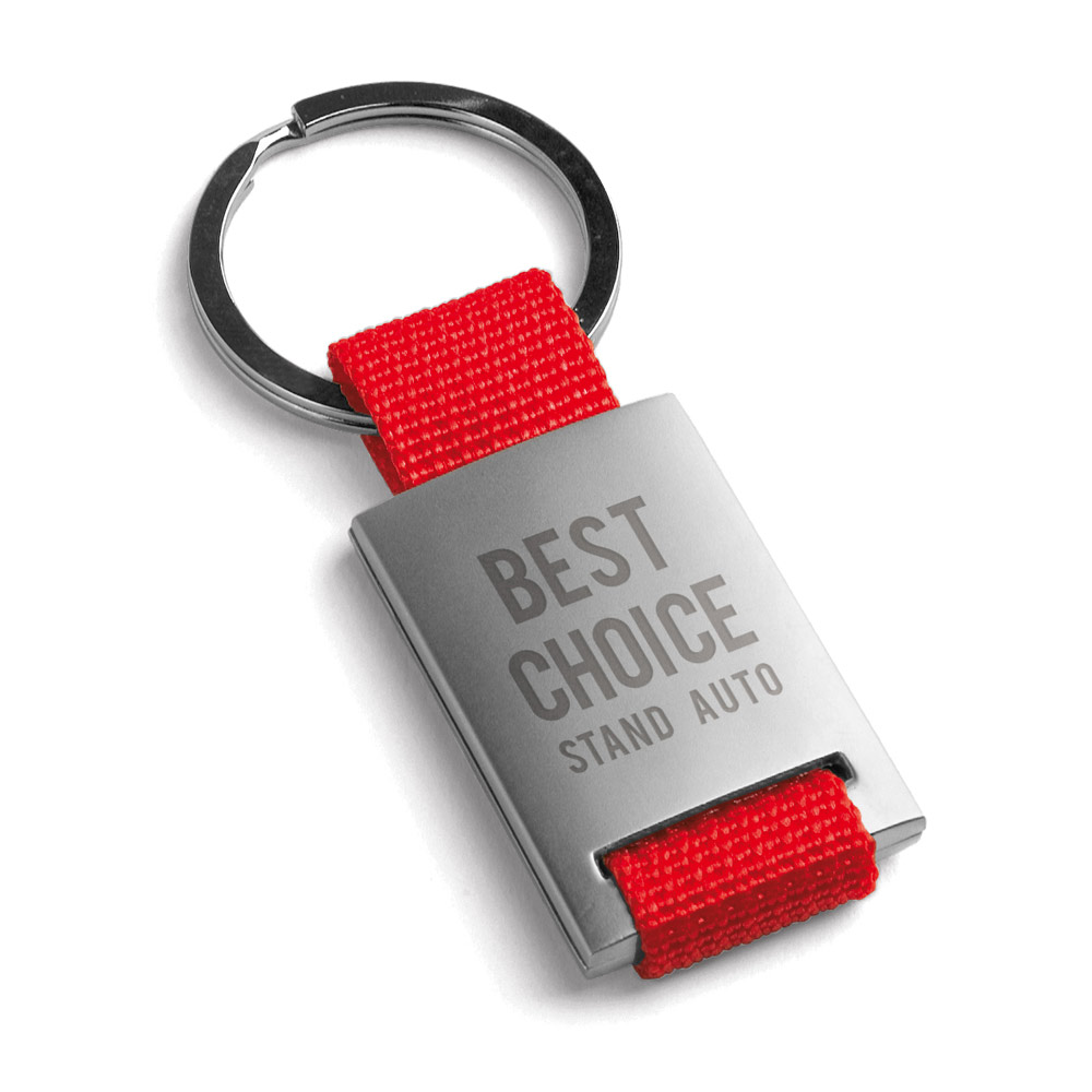 Schlüsselanhänger aus Metall und Gurtband. Geliefert in einer Geschenkschachtel. 28 x 60 x 6 mm