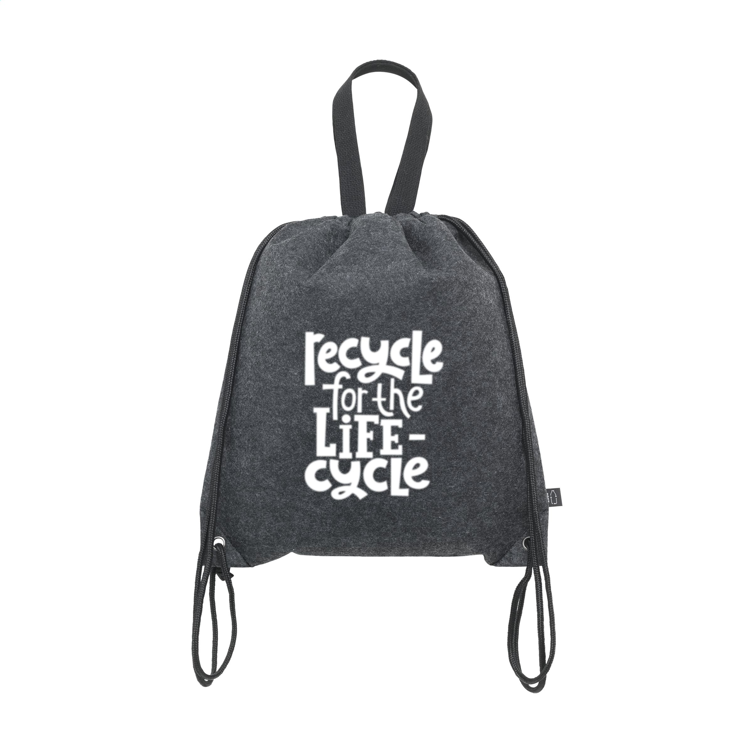 WoW! Rucksack aus RPET-Filz (hergestellt aus recycelten PET-Flaschen und recycelten Textilien). Mit Kordelzug und praktischen Trageschlaufen. GRS-zertifiziert. Recyceltes Material insgesamt: 82%. Fassungsvermögen ca. 10 Liter.