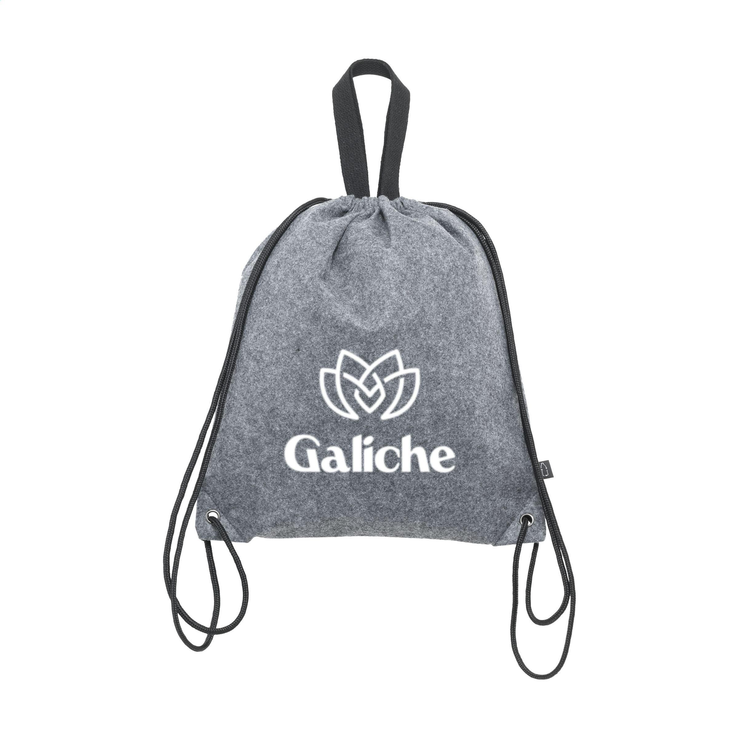 Rucksack aus RPET-Filz (hergestellt aus recycelten PET-Flaschen und recycelten Textilien). Mit Kordelzug und praktischen Trageschlaufen. GRS-zertifiziert. Recyceltes Material insgesamt: 82%. Fassungsvermögen ca. 10 Liter.