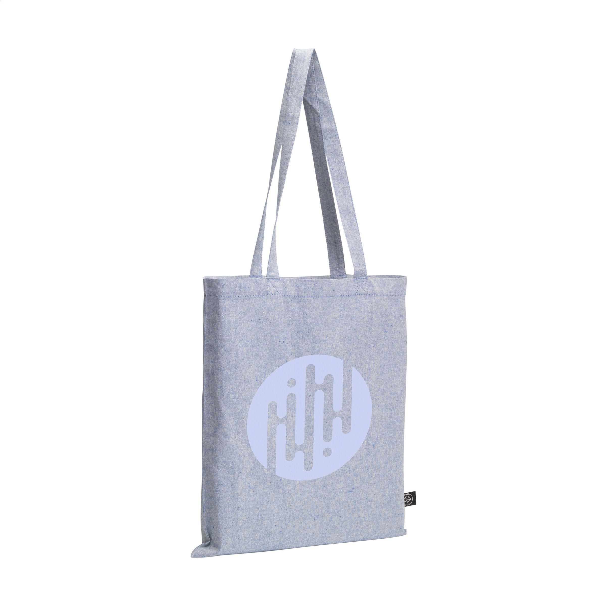 Einkaufstasche aus 80% recycelter Melange-Baumwolle und 20% recyceltem Polyester (180 g/m²). Mit langen Griffen. GRS-zertifiziert. Fassungsvermögen ca. 8 Liter. Diese Baumwolle ist recycelt. Daher kann die Farbe je nach Produkt variieren.