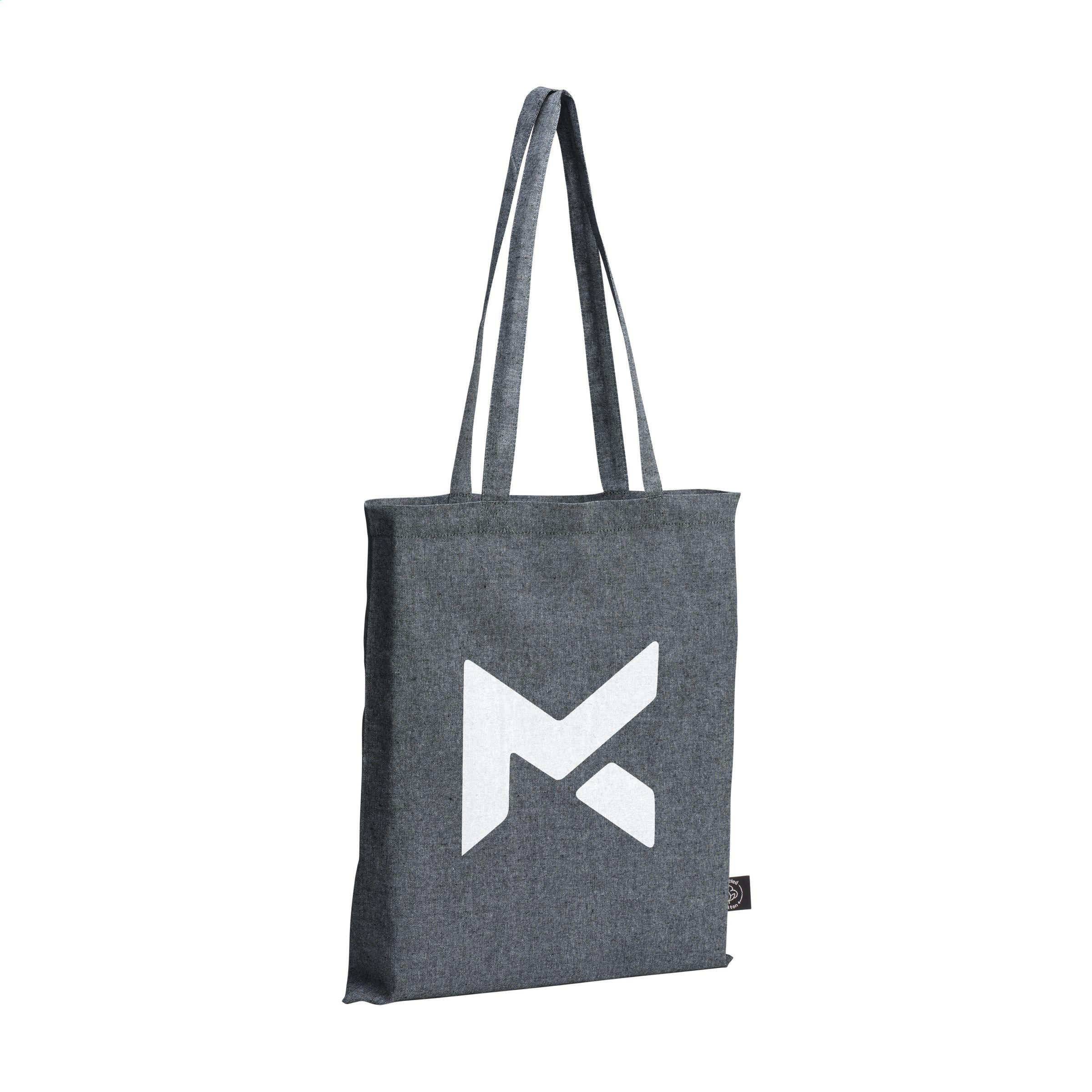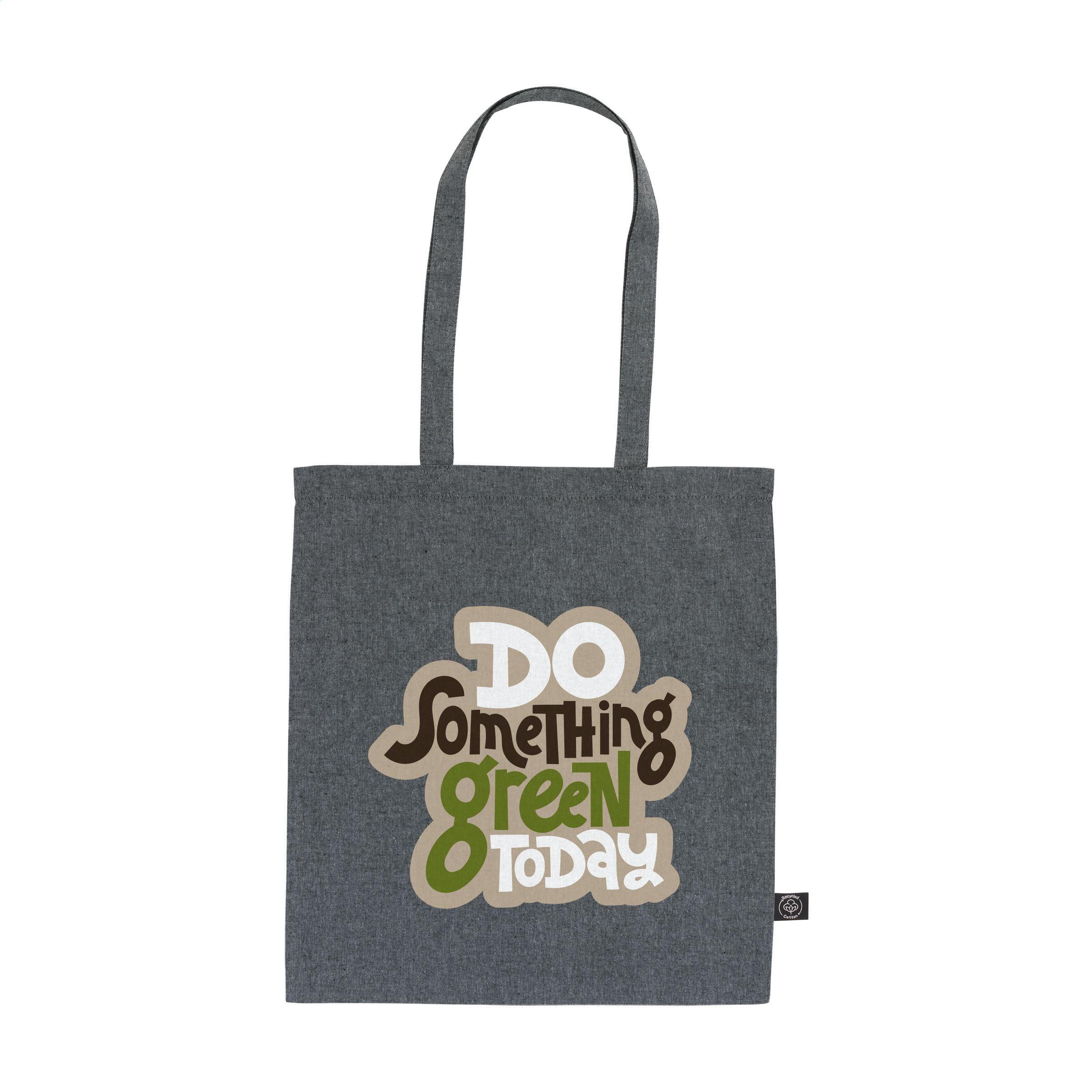 Einkaufstasche aus 80% recycelter Melange-Baumwolle und 20% recyceltem Polyester (180 g/m²). Mit langen Griffen. GRS-zertifiziert. Fassungsvermögen ca. 8 Liter. Diese Baumwolle ist recycelt. Daher kann die Farbe je nach Produkt variieren.