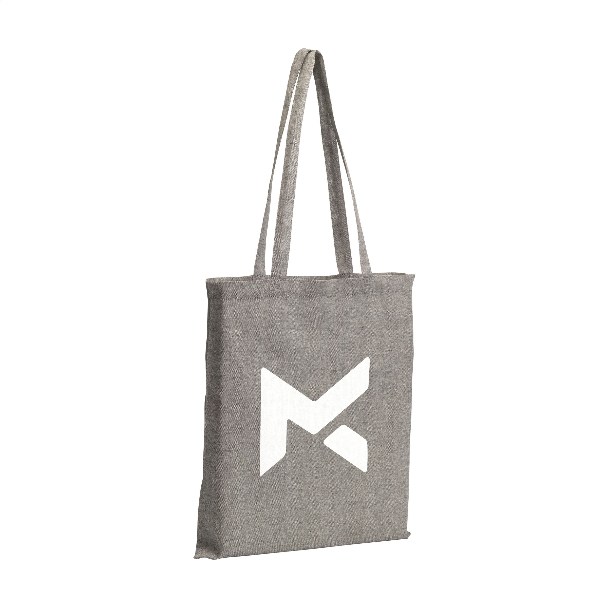 WoW! Einkaufstasche aus gemischter, 100% recycelter Baumwolle (180 g / m²). Mit langen Griffen. GRS-zertifiziert. Diese Baumwolle ist recycelt. Daher kann die Farbe je nach Produkt variieren.