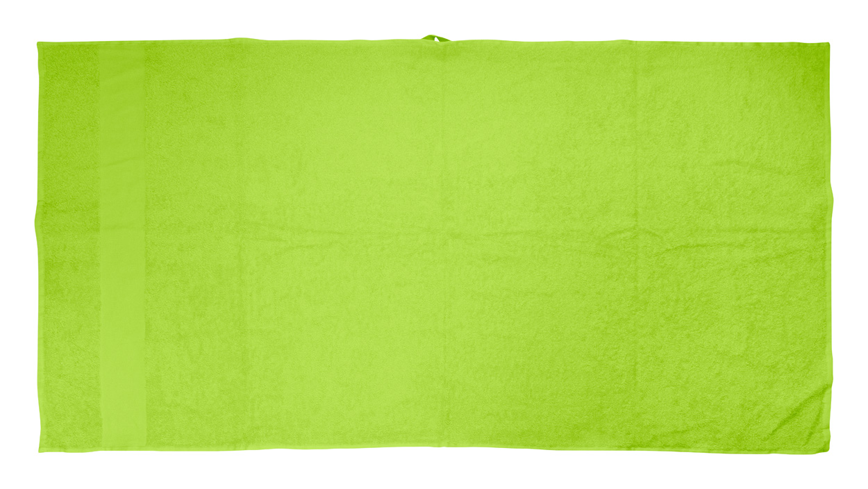Badetuch aus Baumwollfrottee mit Aufhängeschlaufe und bedruckbarem Bordüre. Material: 100% Baumwolle, 360 g / m².
