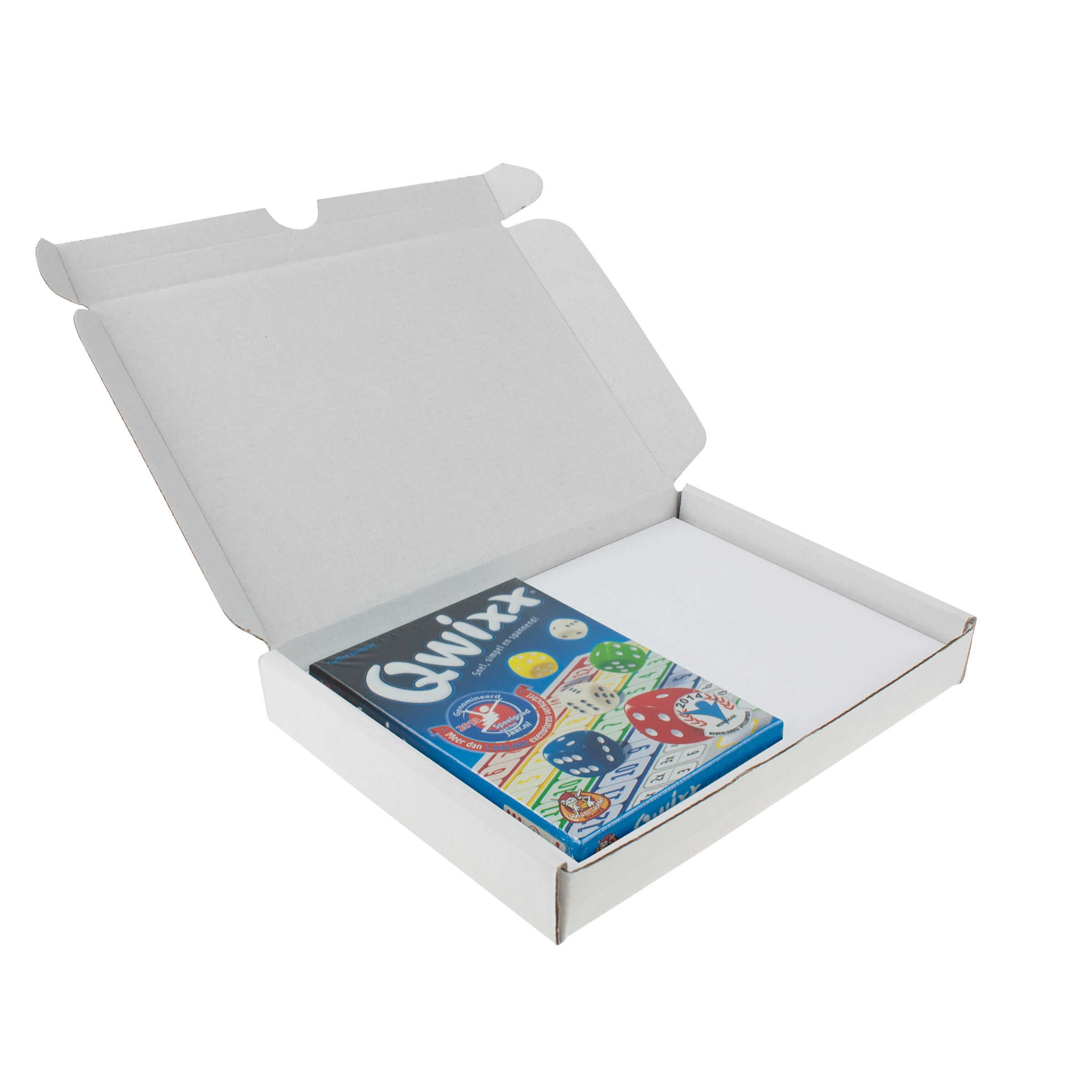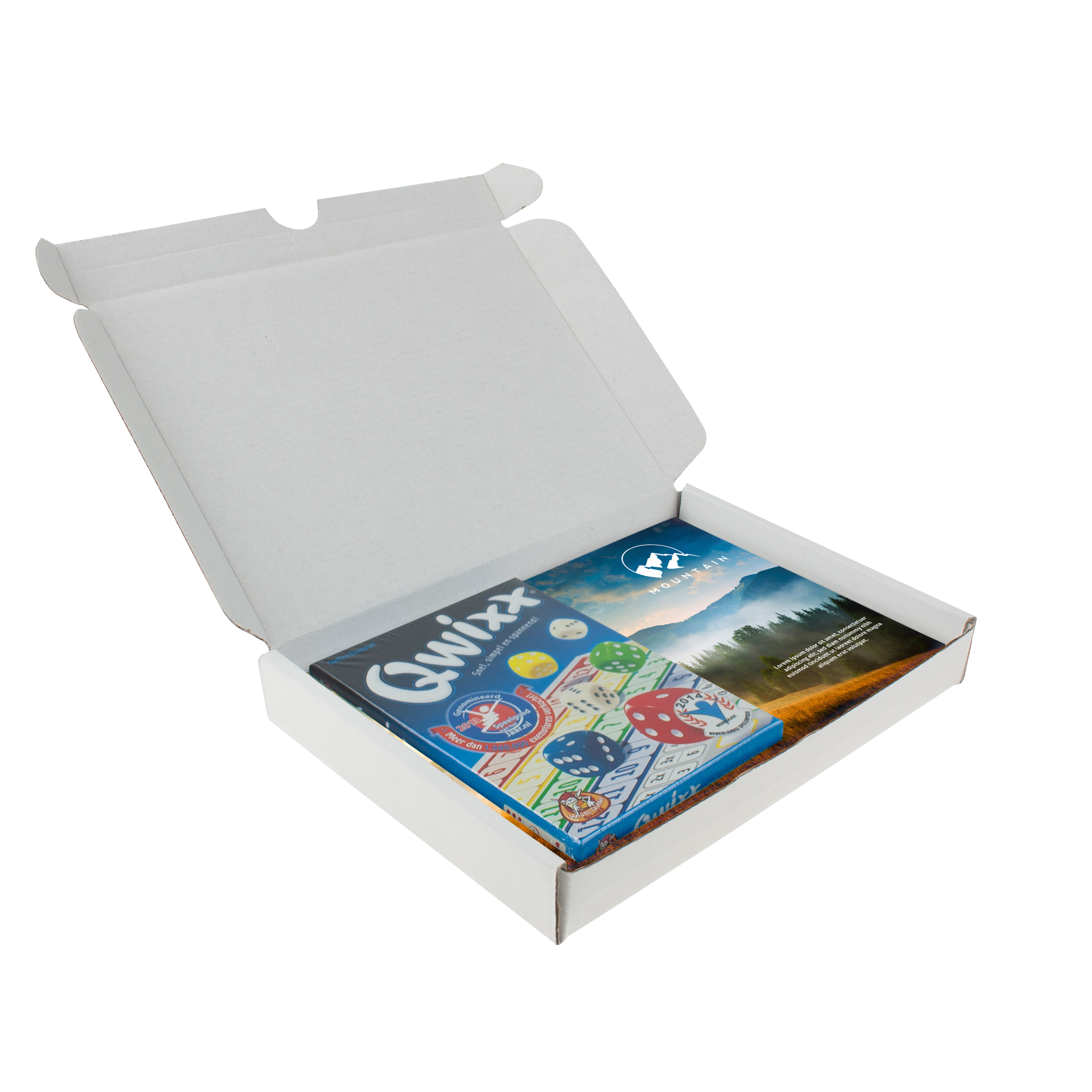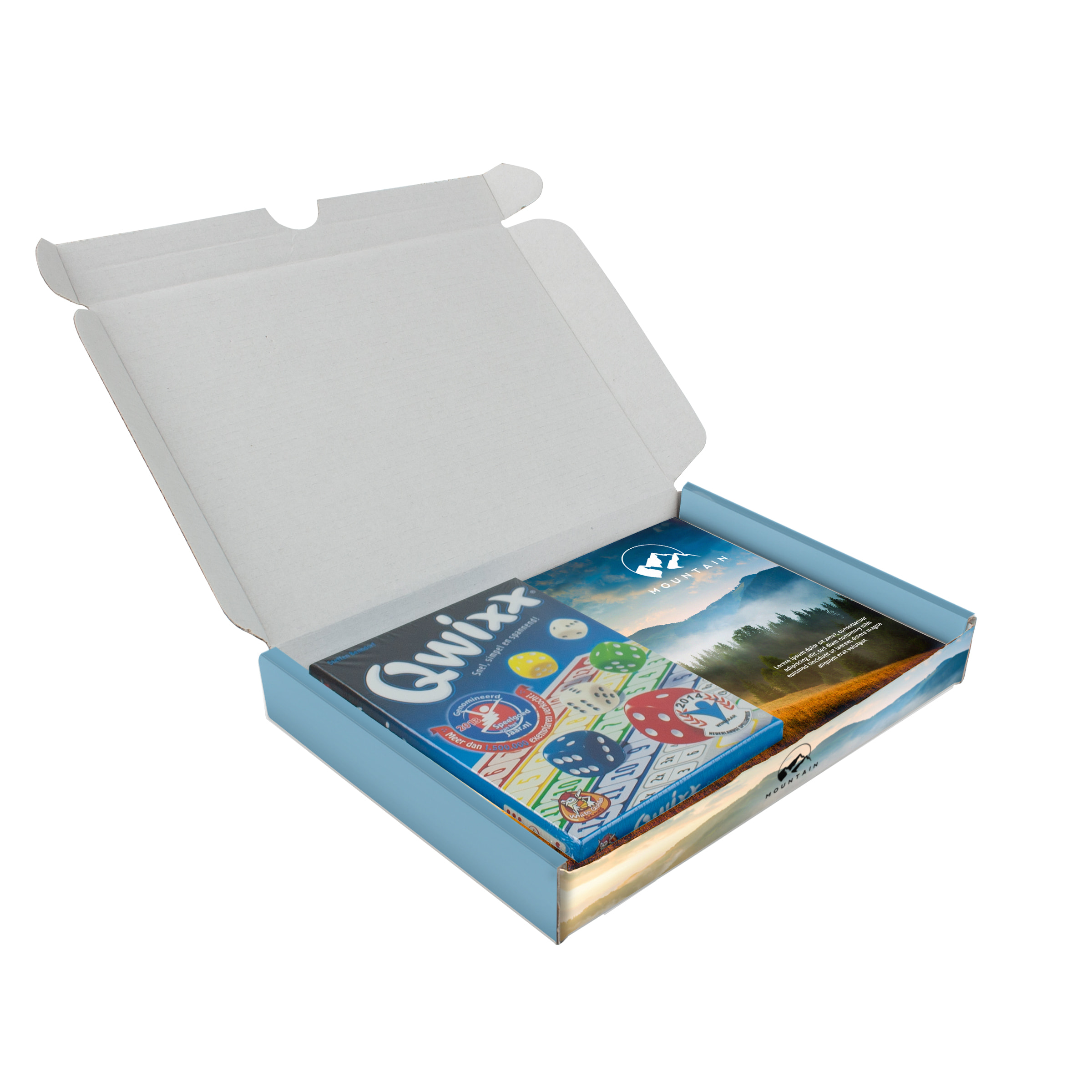 Qwixx ist ein Spiel, das wirklich nie langweilig wird! Mit Qwixx musst du nicht warten, bis du an der Reihe bist, denn jeder kann den Wurf nutzen, den der aktive Spieler würfelt! Je mehr Zahlen Sie auf dem Bewertungsbogen ankreuzen, desto mehr Punkte erhalten Sie. Qwixx lässt sich in zwei Minuten erklären und ist spannend bis zum letzten Wurf. Vervollständigen Sie das Werbegeschenk mit einer vollfarbigen, personalisierten Geschenkbox, einem Inlay, einem Flyer oder einer Hülle um die Verpackung.