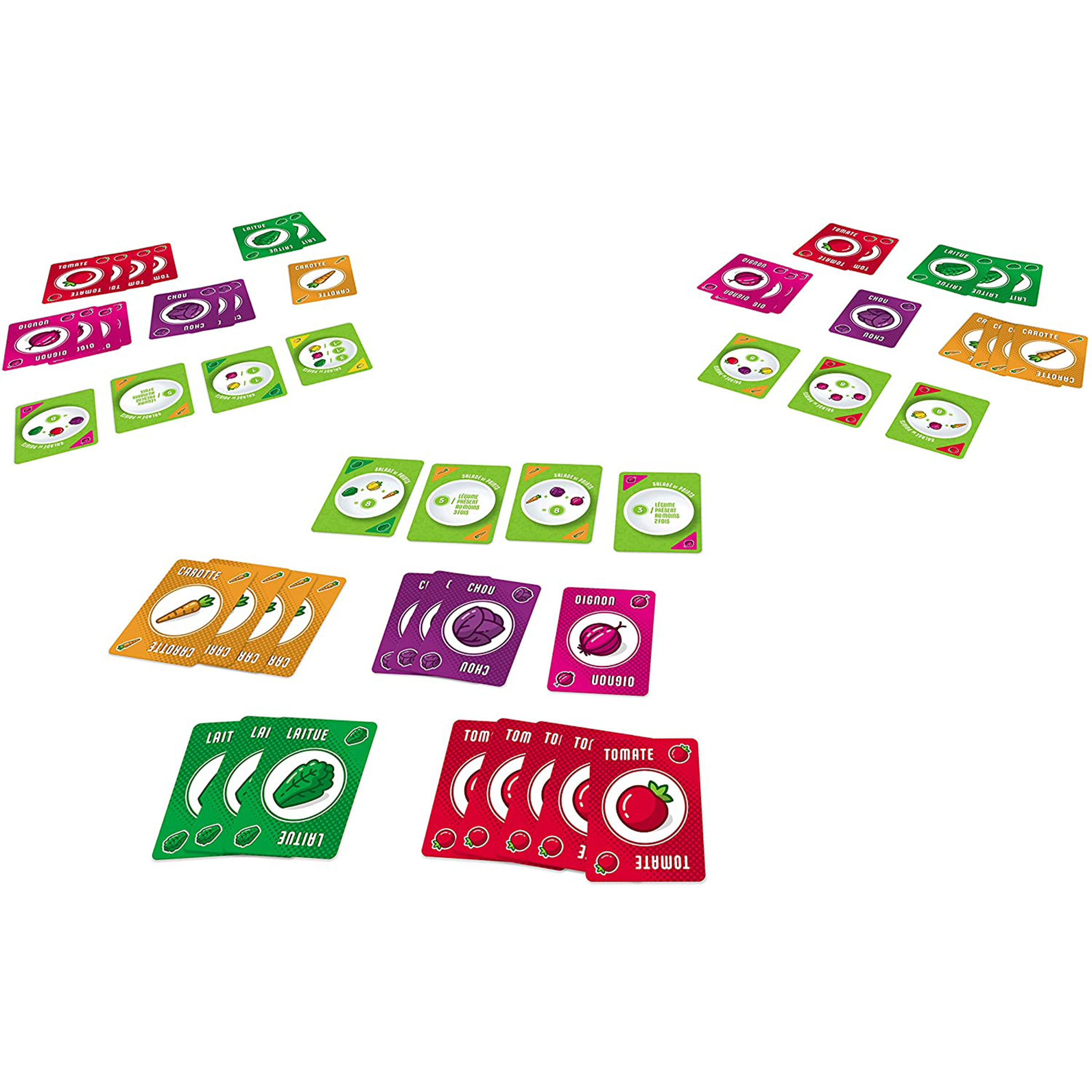 Schnell zu spielen, leicht und ein Spaß für die ganze Familie. Mit mehr als 100 Möglichkeiten, Punkte zu erzielen, ist jedes Spiel einzigartig, und die Spieler können ihre Strategien multiplizieren, um zu versuchen, zu gewinnen! Der Markt entwickelt sich im Laufe des Spiels, wählen Sie die besten Kombinationen aus Gemüse und Zielen, um den besten Punktesalat zusammenzustellen. Metallbox, 108 R°V°-Karten, französische Version. Alter: ab 8 Jahren Spieler: 2 bis 6 Veröffentlicht in Frankreich von Gigamic