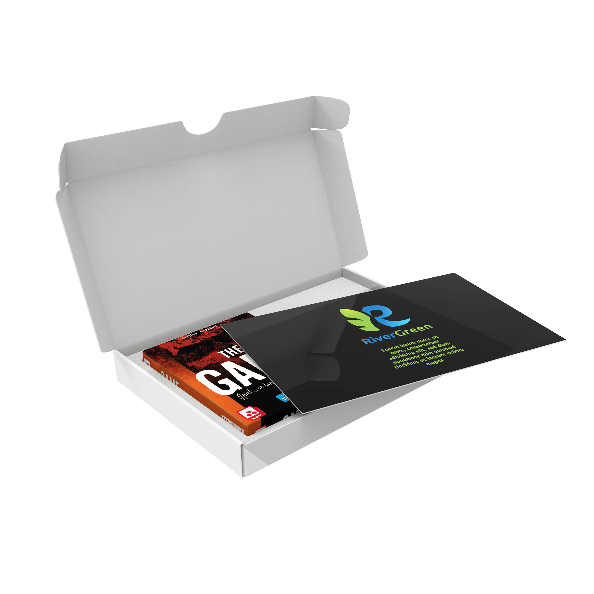 Veredelung: Geschenkkarton 21 x 15 x 2,7 cm (A5), CMYK, 345 x 381 mm (PABX01SV)