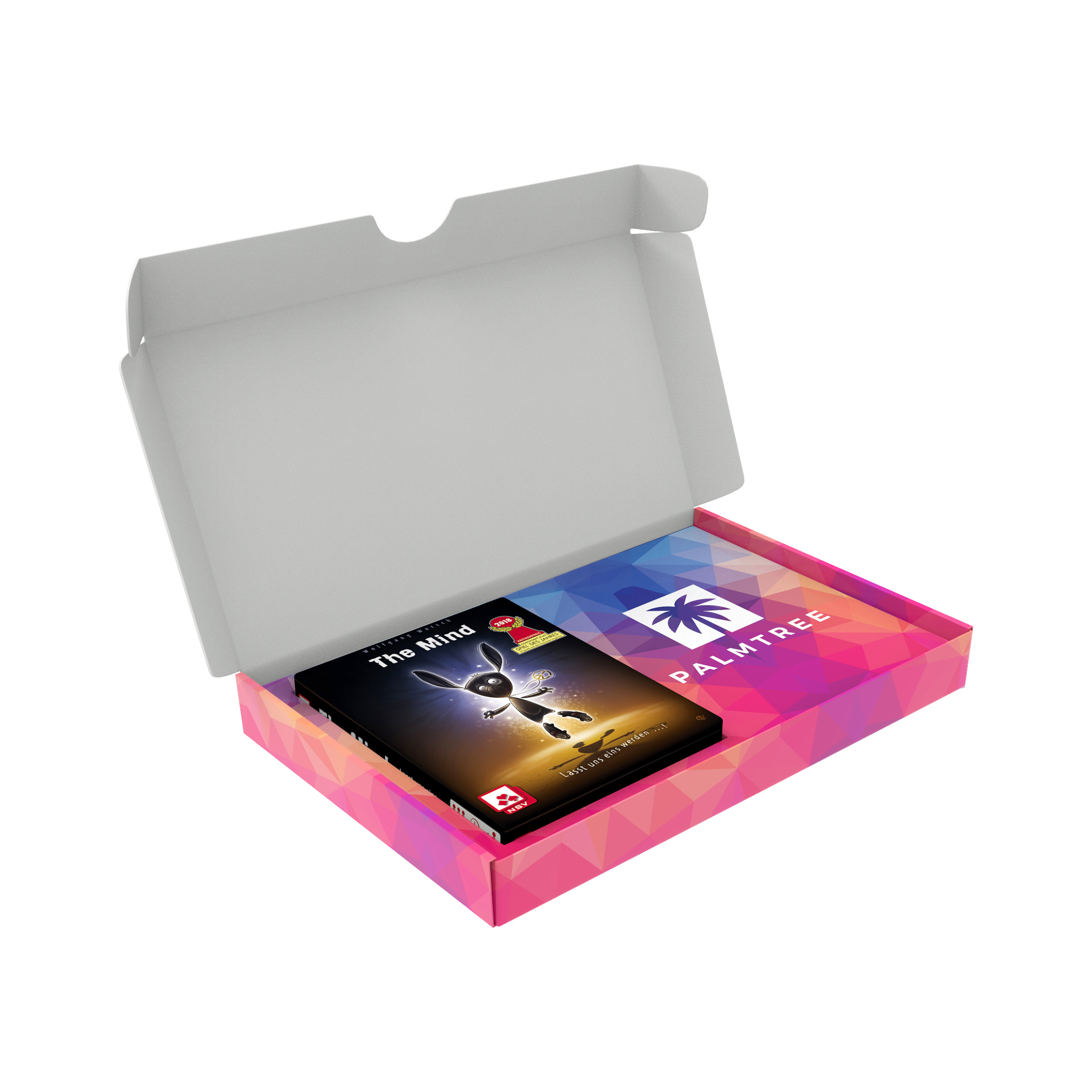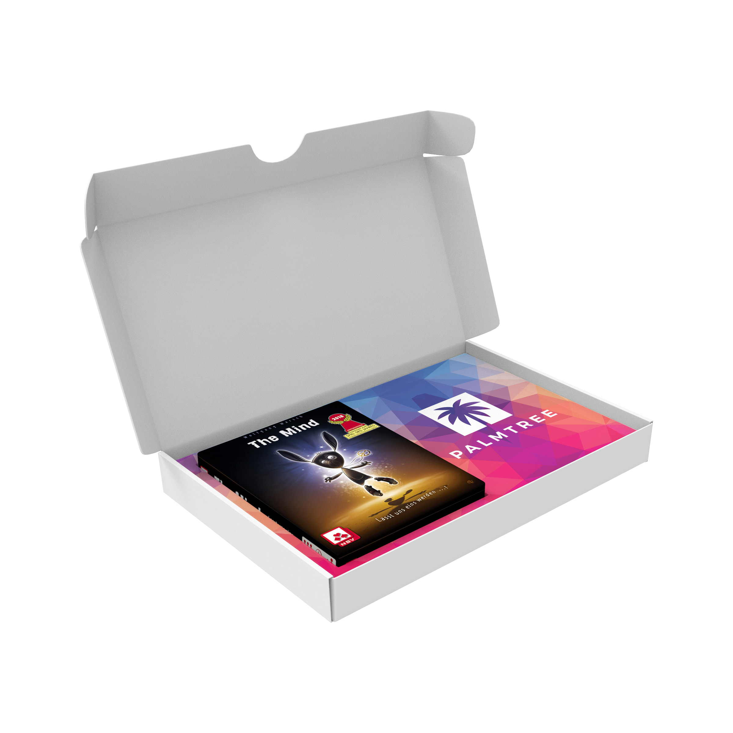 The Mind ist mehr als nur ein Spiel. Es ist ein Experiment, eine Reise, total einfach und die genialste Team-Erfahrung, die man machen kann. Wenn ihr das letzte Level gemeinsam besiegt, werdet ihr auf Wolke Sieben schweben. Ihr dürft euch nämlich nicht absprechen, keine Informationen austauschen. Und trotzdem funktioniert es - wenn ihr wirklich EINS werdet. Nur mit Hilfe eurer Gedanken... Für das Altersspektrum von 8 bis 99 Jahre. Veredeln Sie das Produkt mit einer vollfarbigen, personalisierten Geschenkbox, einem Inlay, einem Flyer oder einem Sleeve um die Verpackung.