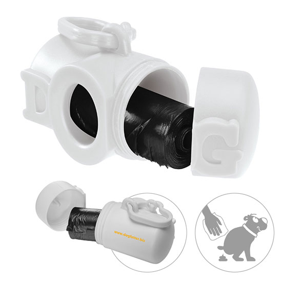 Gassi-Beutel "DOG" mit ca. 15 schwarzen Kotbeuteln und Kunststoffkarabiner
