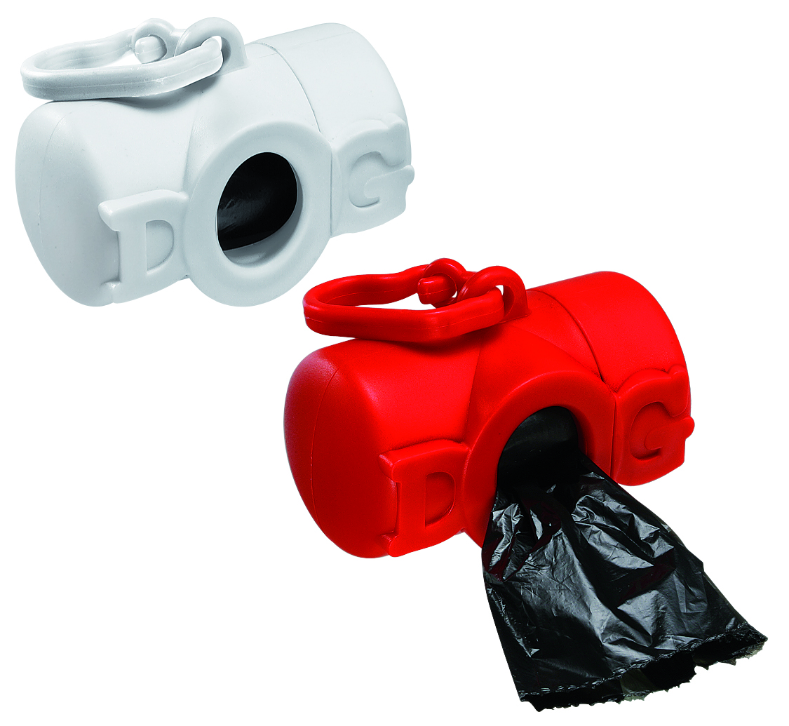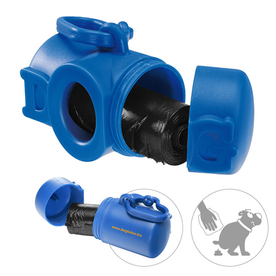 Gassi-Beutel "DOG" mit ca. 15 schwarzen Kotbeuteln und Kunststoffkarabiner
