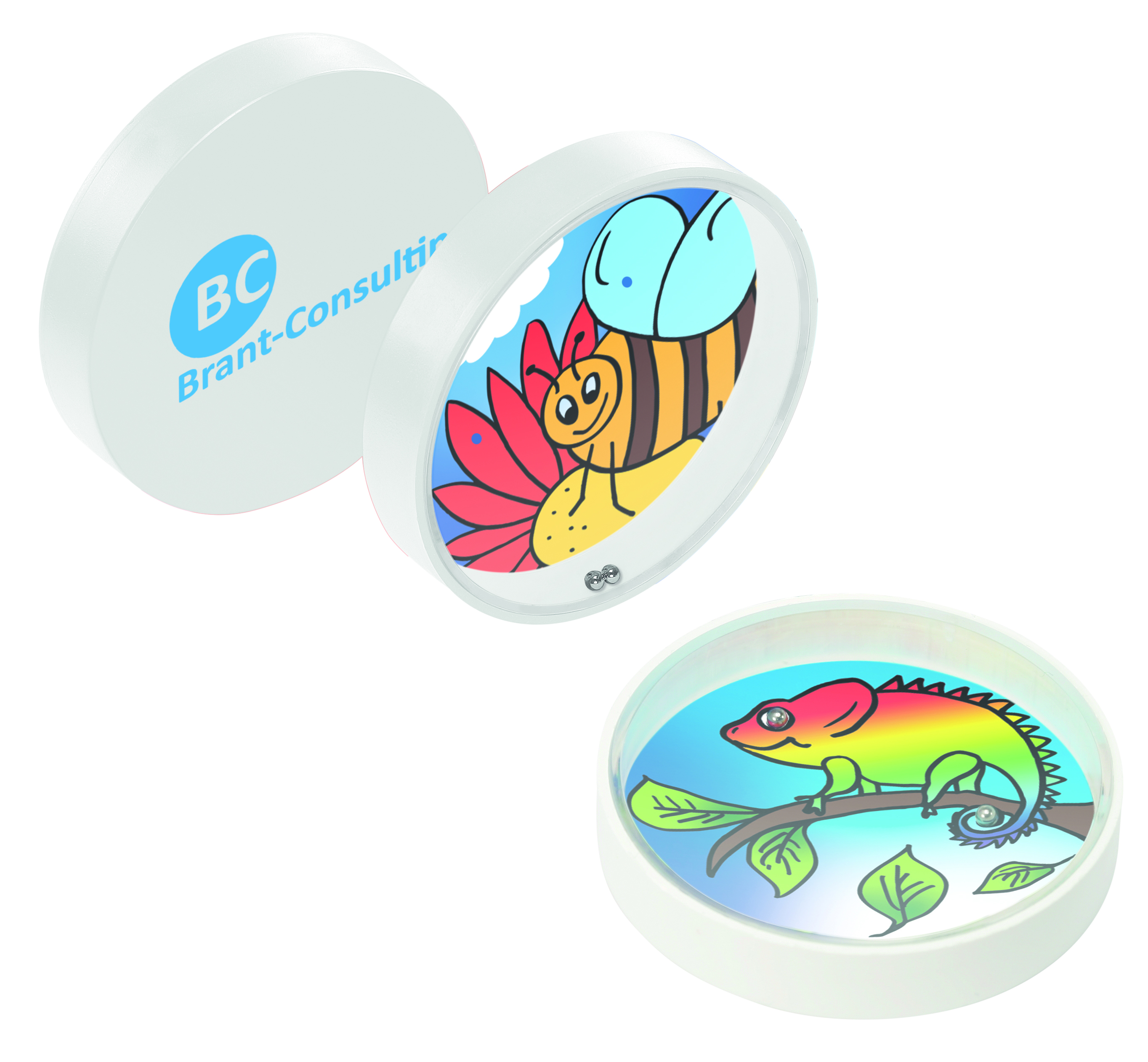 Geduldspiel, rund mit Stahlkugeln, 5 Motive sortiert. Individuelles Motiv auf Anfrage