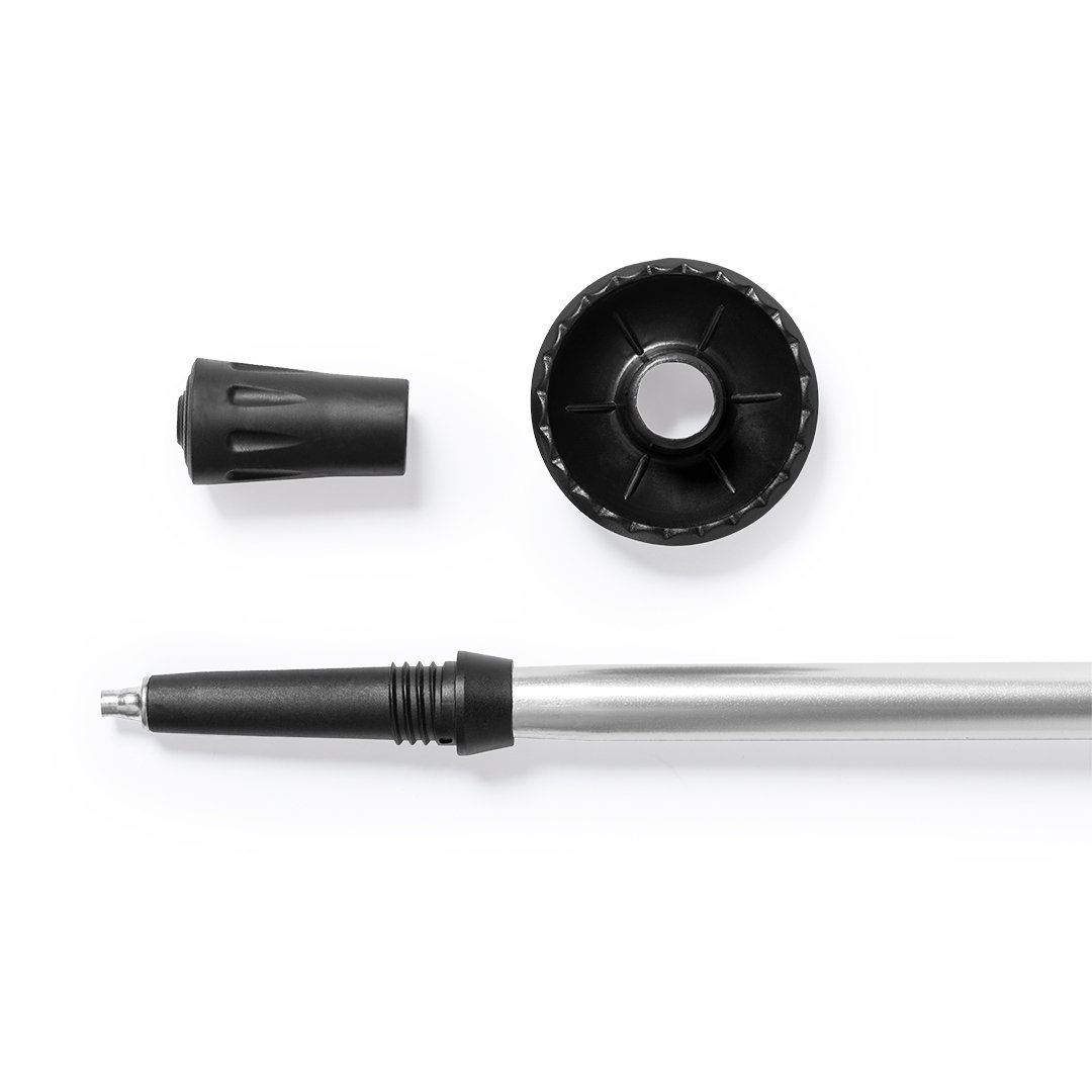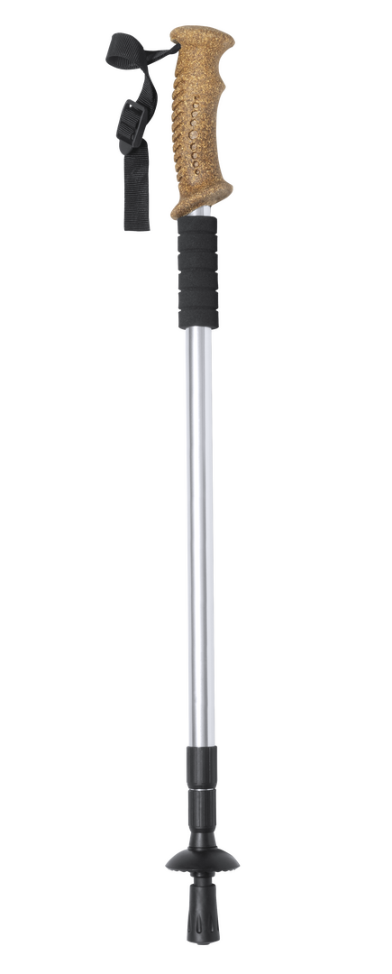 Faltbarer und teleskopischer Sportstock. Hergestellt aus widerstandsfähigem Aluminium, mit komfortablen ergonomischen Griff in Naturkork und Schaumstoff-Zubehör, um Ihre Hände ruhen. Dämpfungsmechanismus, mit Anti-Rutsch-Verstärkung am Ende in Kontakt mit Schlaf und verstellbaren Sicherheitsgurt. Einstellbar in der Höhe, umfasst Schnee Zubehör und kommt in einer Tragetasche in natürlicher Farbe präsentiert, mit Schultergurt für den einfachen Transport und Verschluss in schwarz.