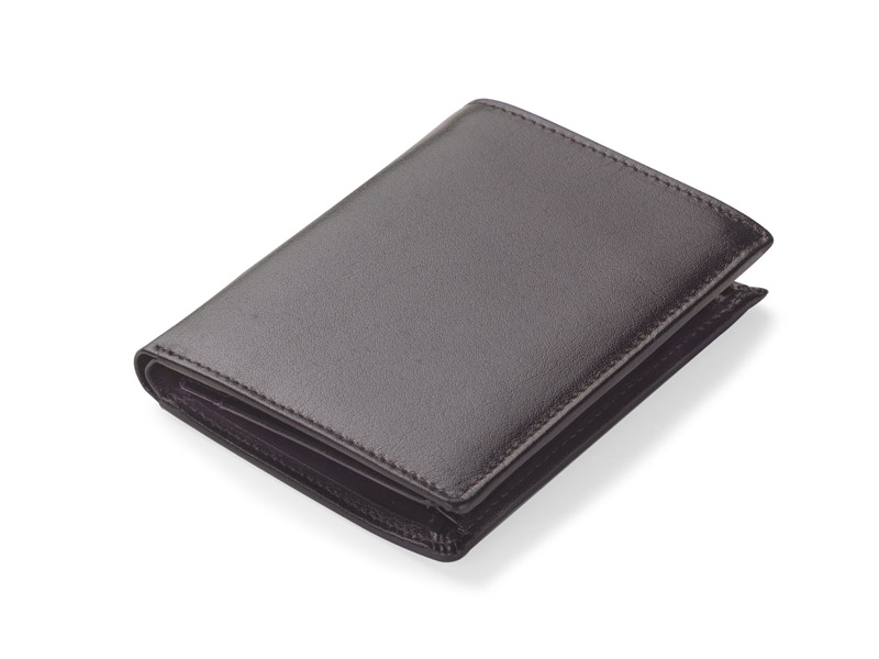 Geldbeutel. Verfügt über: 1Münzfach, 2 Scheinfächer, 6 Kreditenkartenfächer, 5 Ausweisfächer. Zusätzlich wurde es mit einer Folie ausgestattet, die vor dem Diebstahl von Kreditkartendaten schützt und das RFID-Signal blockiert. Gepackt in eine Holzbox. Das Logo wird auf dem Gelbeutel geprägt oder aufgedruckt. Es gibt auch die Möglichkeit, das Logo auf die Box zu gravieren.