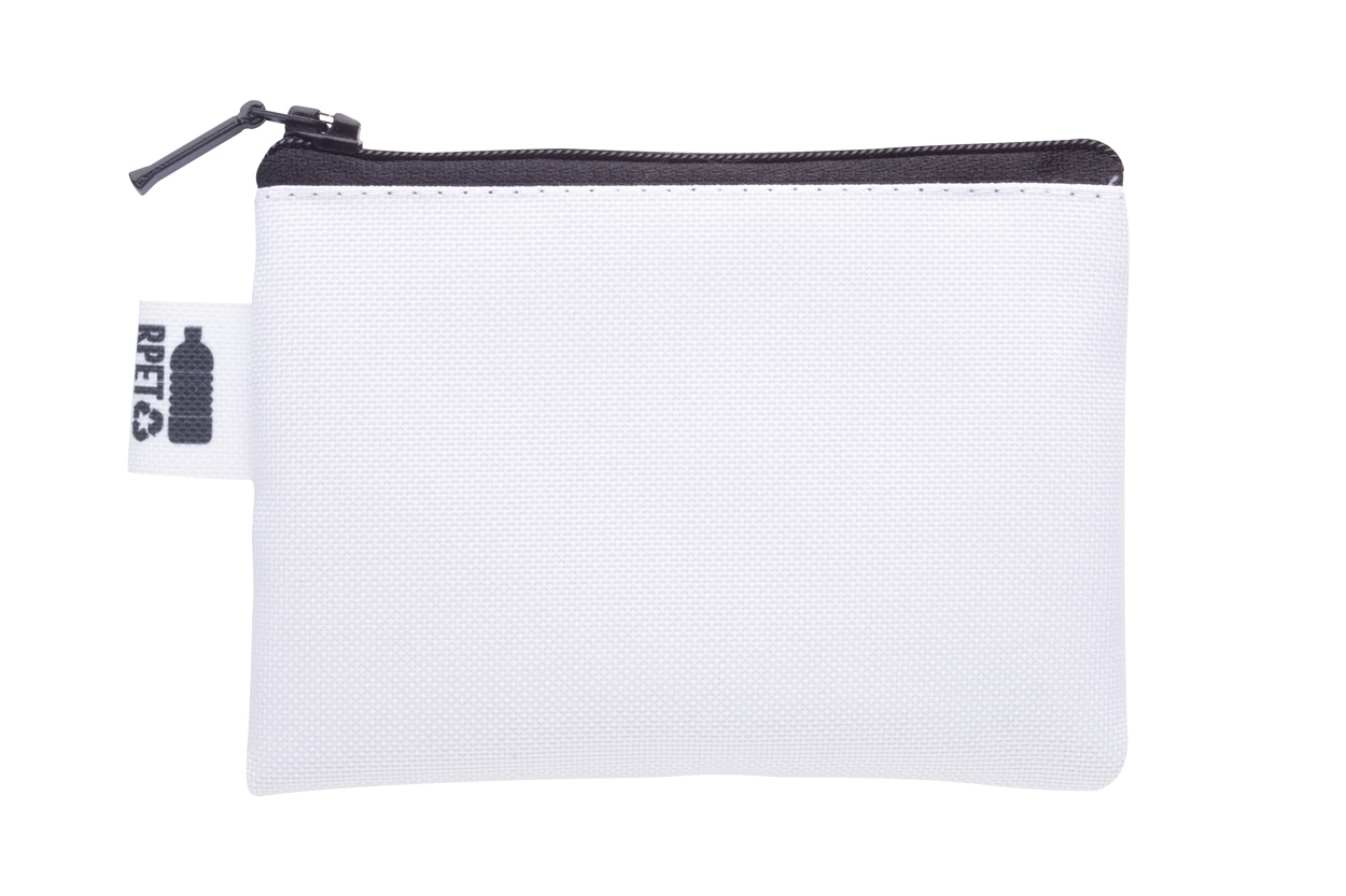 Individuelle Geldbörse mit RFID-Schutz mit Reißverschluss, Material: 600D RPET Polyester. Der Preis ist inkl. Sublimationsdruck und RPET-Label. Mindestmenge: 50 Stk.
