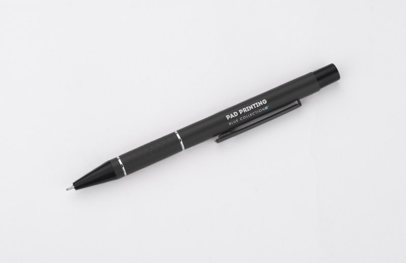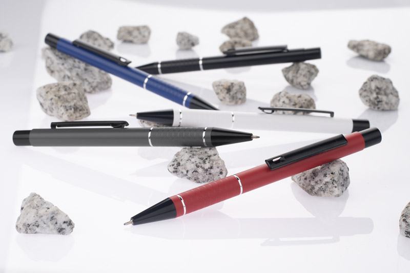 Der SATO-Stift vereint Zuverlässigkeit, Schönheit und Funktionalität. Es ist aus leichtem Aluminium gefertigt und die schwarze Oberfläche verleiht ihm Eleganz und Prestige, was es zu einem idealen Werbeprodukt macht. Der Korpus des Stiftes ist mit zwei silbernen Ringen und Streifen mit einer leicht rauen Textur verziert, die ihm eine angenehm sinnliche Dimension verleihen. Die Halbgelmine sorgt für ein unglaublich weiches und flüssiges Schreibgefühl. Mit einer Strichstärke von 0,7 mm lassen sich Notizen, Hervorhebungen und Briefe besonders präzis anfertigen.