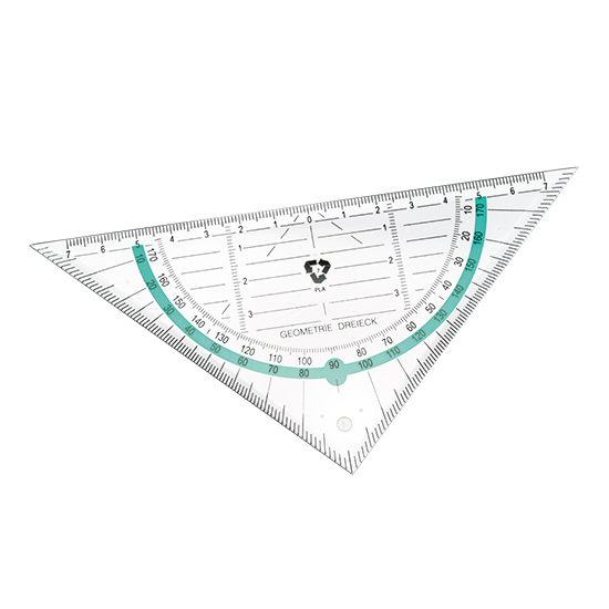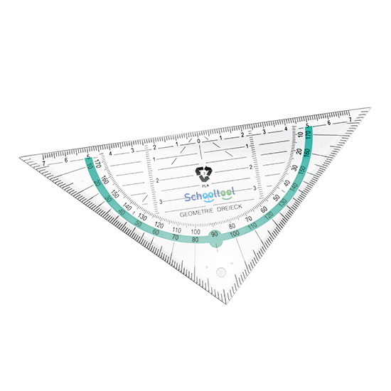 Geodreieck Bio aus nachwachsendem Rohstoffmit 14 cm Skala und farbiger Winkeleinteilung. Biobasierter Kunststoff auf Maisbasis.