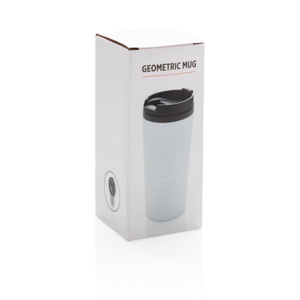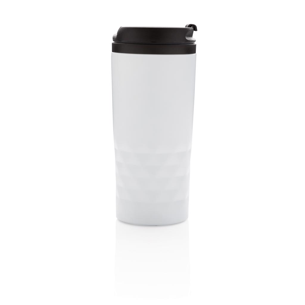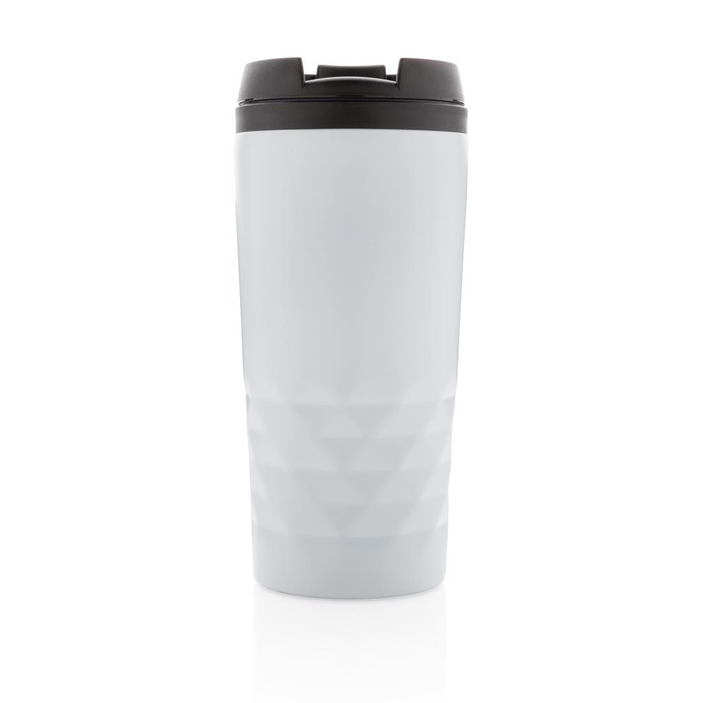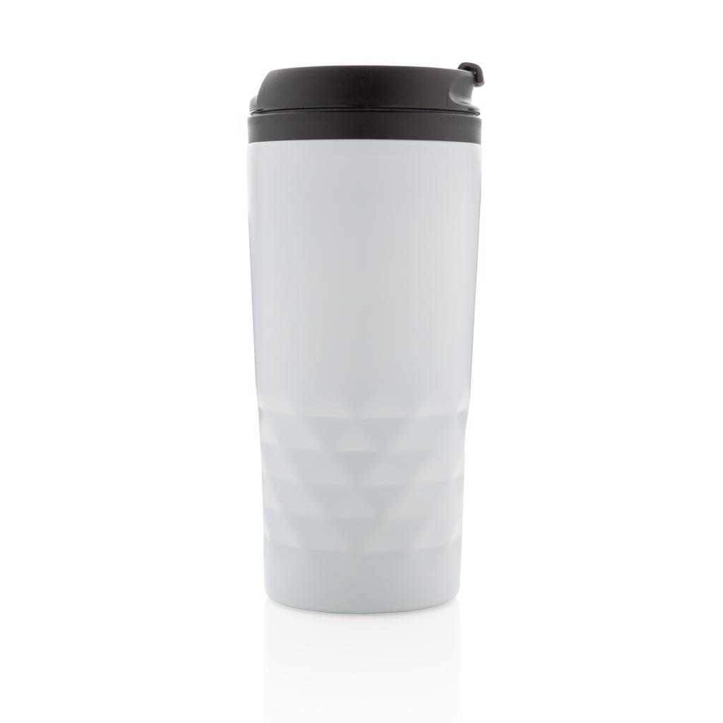 Modischer Stainless-Steel Becher mit geometrischen Details. Innen aus PP. Nur Handwäsche. Inhalt: 300ml. Nur Handwäsche.